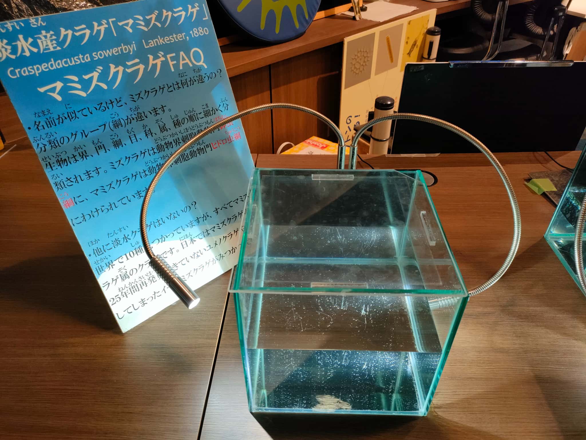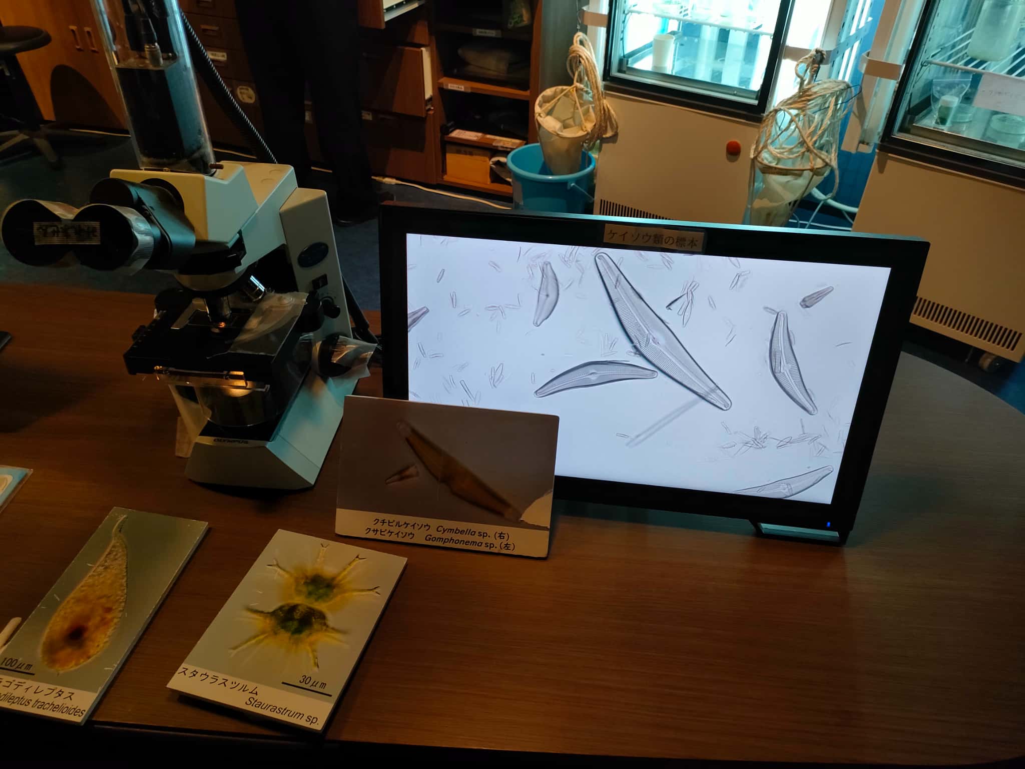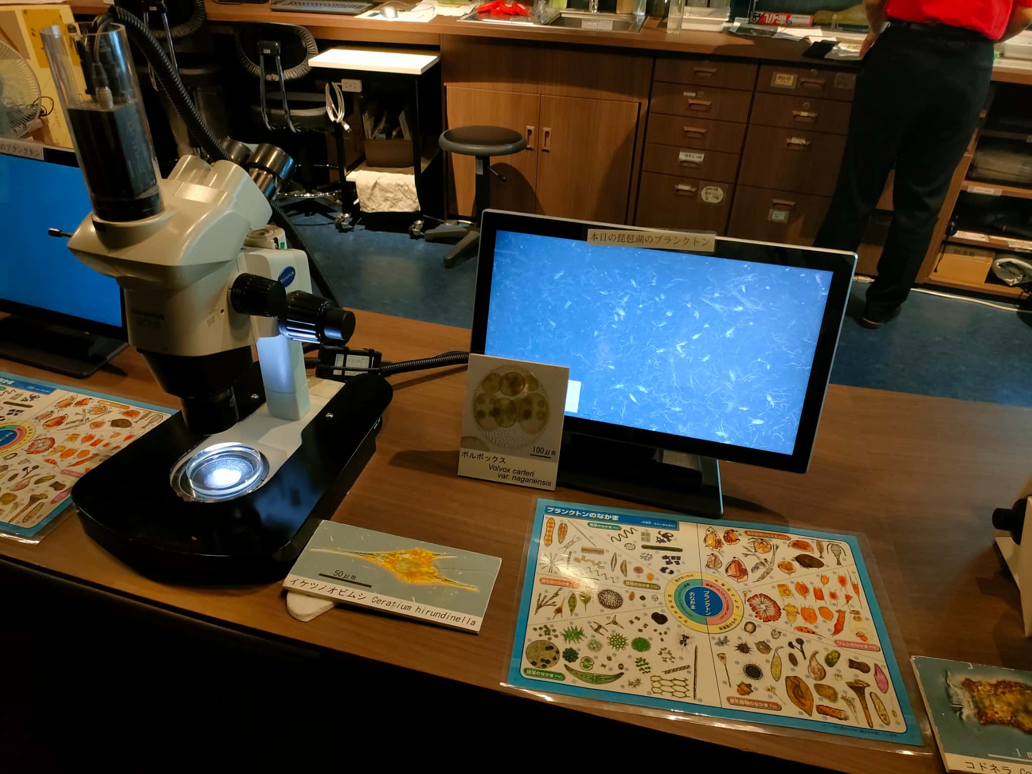 展示は、淡水の水族展示と、琵琶湖周辺での文化の展示、また発見された化石などの展示もあるんですが、淡水の生物という部分で「ミクロ」な生物というところに視点をあてた展示が面白かったです。