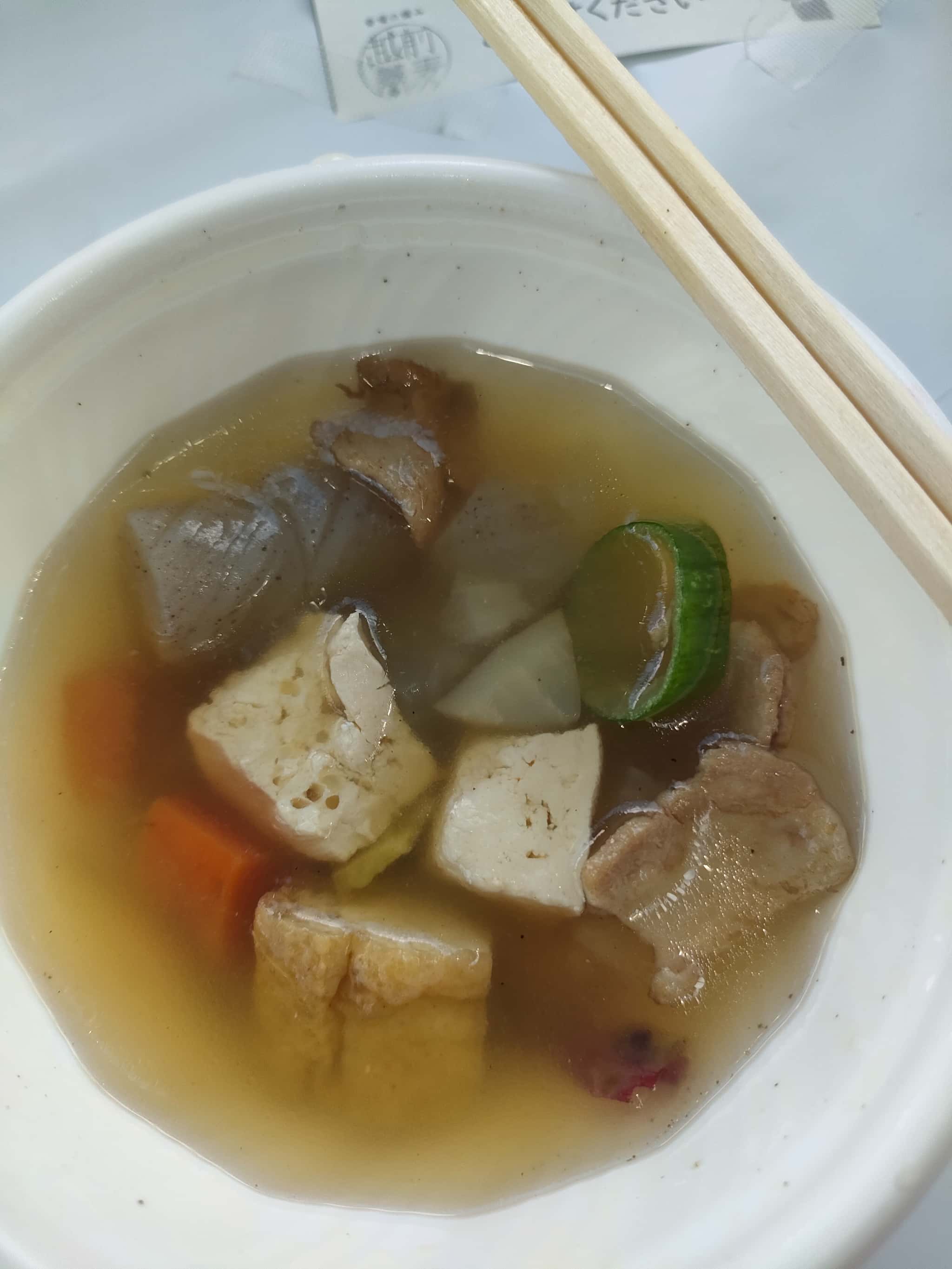 これ、非常においしかったです!こしょうを効かせてるので、風味もよく、そばの香りもほのかに感じます。来年も博覧会があるなら是非出てほしい一品です。