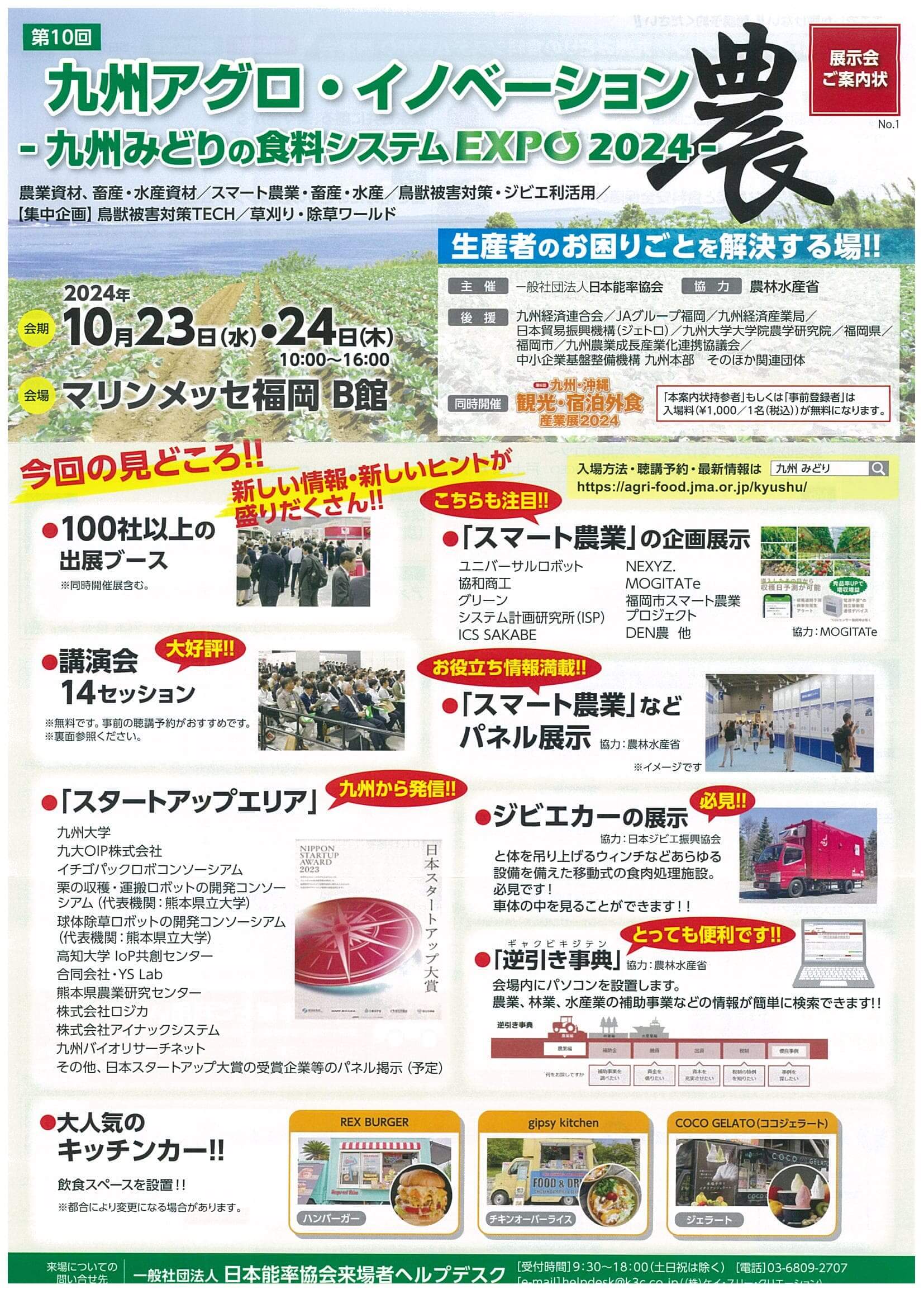 「有限会社FKTlab」は、令和6年10月23日から開催される「第10回 九州アグロ・イノベーション」に今年も出展いたします。