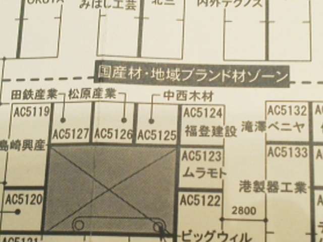ちなみに当社が出店する「国産材・地域ブランド材ゾーン」には、なんと福井の企業が3社も並ぶという、プチ福井ブランドコーナー状態です。しかも、当社は前回同様の角コマなので、思いっきり目立ってます。