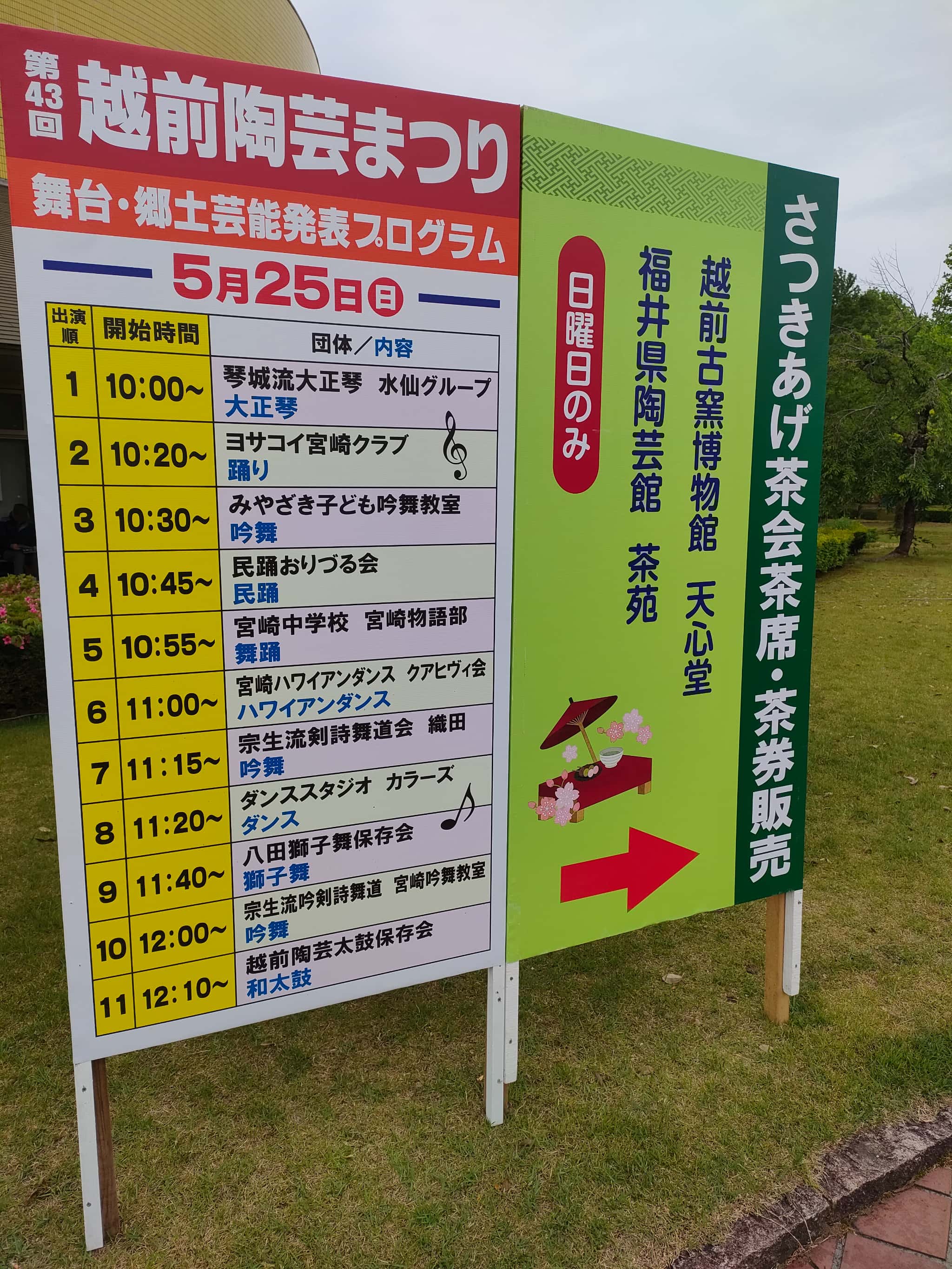 今年も越前陶芸村にて、「越前陶芸まつり」が開催されています。5月24日と25日です。土日ですが、天気が悪いことが予測されたので、まだマシな24日の開場一番で行ってきましたw