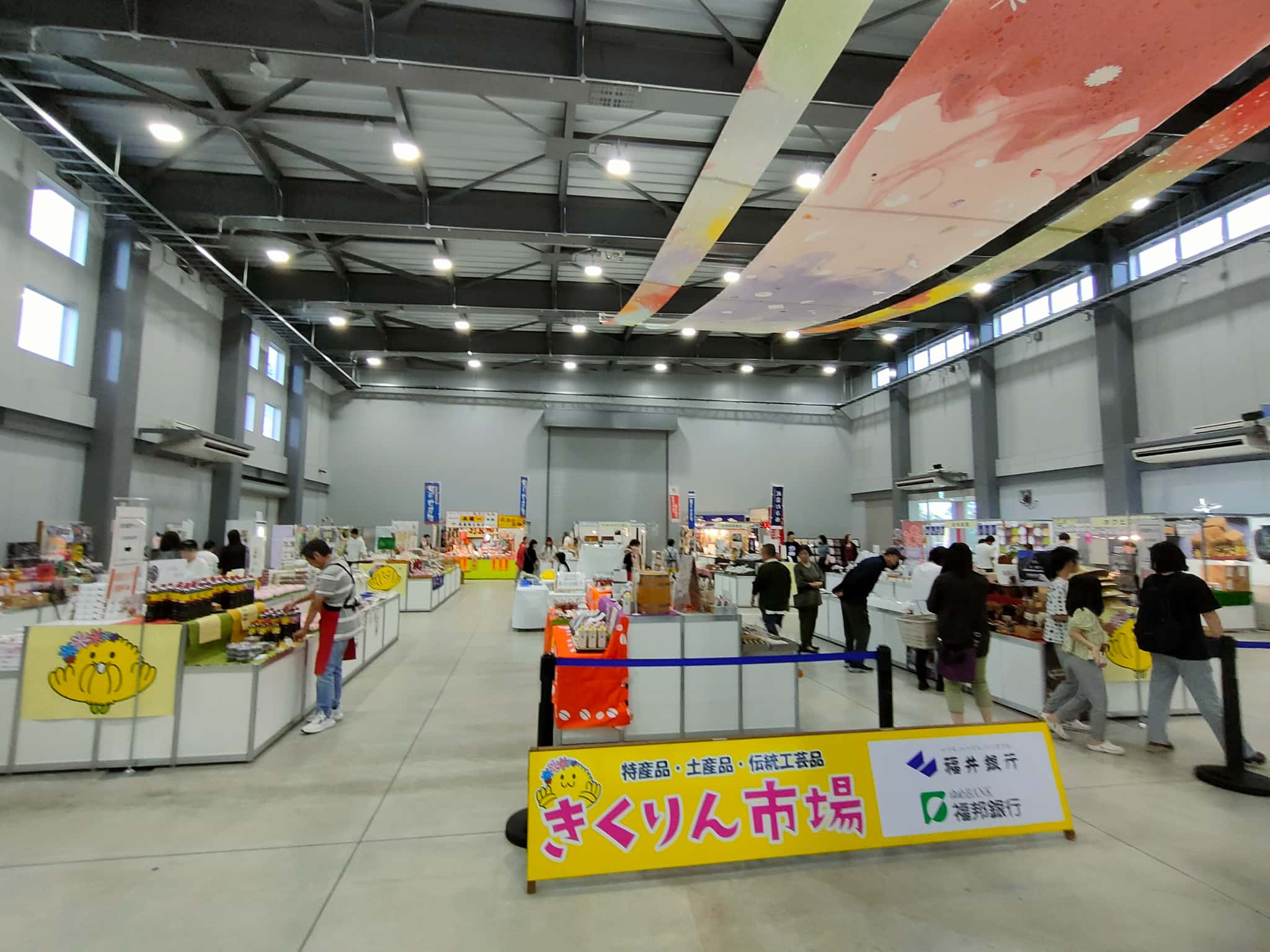 さて、菊人形の会場では様々な露天商が並ぶんですが、今年は「きくりん市場」っていう感じで集約されてて、会場内の通路の露店はまばらでした。