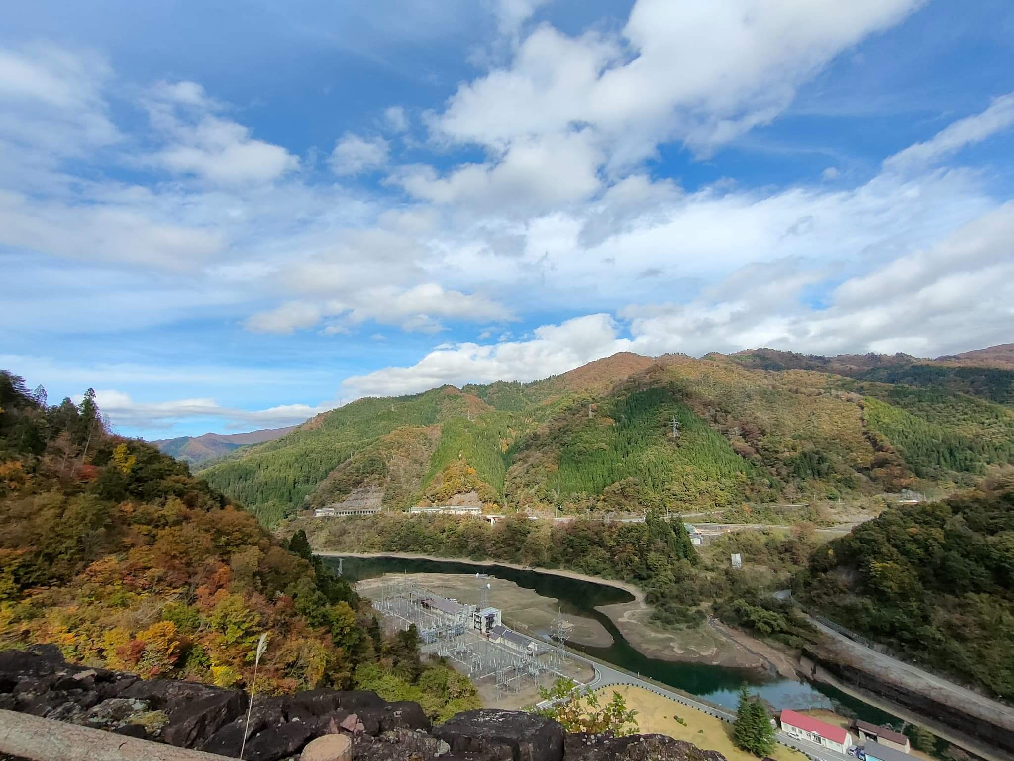 ダム湖からみる山々の紅葉は、まっかっかというわけではないにしろ、渋く紅みを帯びています。せっかくダムに来たのでちょっと紹介をw