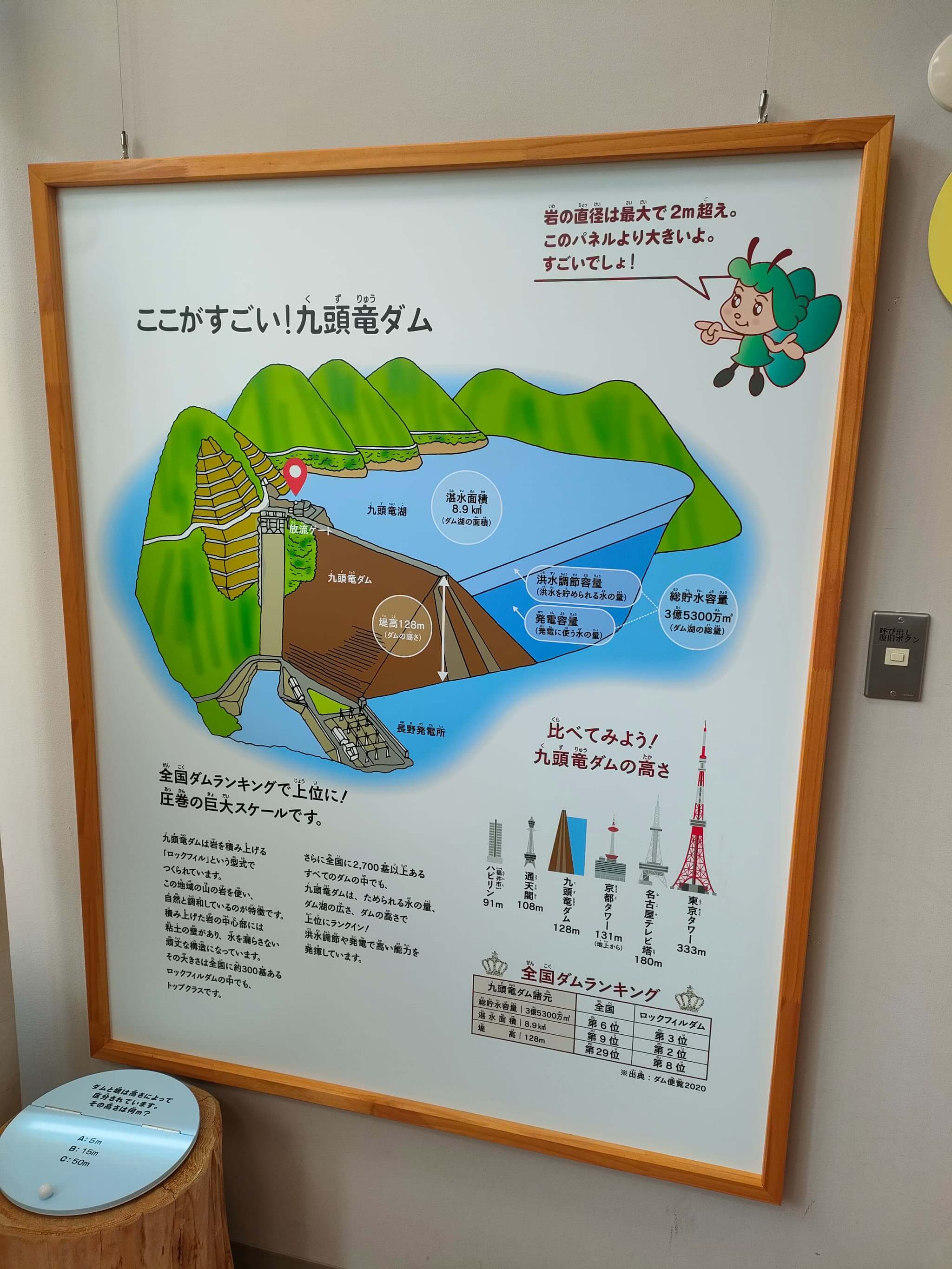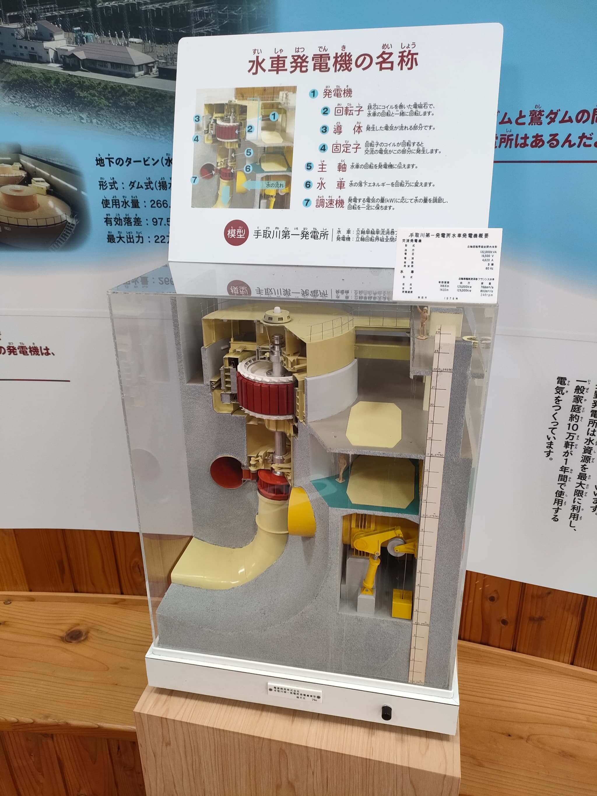 九頭竜ダムの展示室には、様々な資料の展示があります。発電機の仕組みなどの説明もあります。この九頭竜ダムの建設にあたっては、村が湖底に沈み、工事中には多くの殉職者が出てもようです。慰霊碑も建てられています。