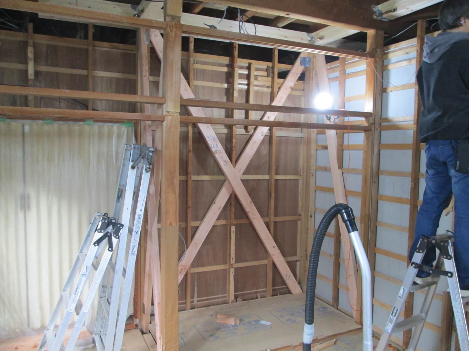 以前から耐震改修が高コストになるのは、新築住宅に取り入れられるような手法を用いて改修することを中心に計画がなされていたことが多く、その結果、解体しなければならない箇所や面積が増え、高コストにつながる傾向が強かったわけですが、はっきり言えば、それは耐震改修における補強設計にコスト意識がなく、工夫がなかったために引き起こされたことなのです。弊社は2009年より、耐震改修事業を推し進めてきましたが、当初より「お金をかけない耐震改修」を目指してきました。特に弊社が意識する耐震改修工事の内容としては、