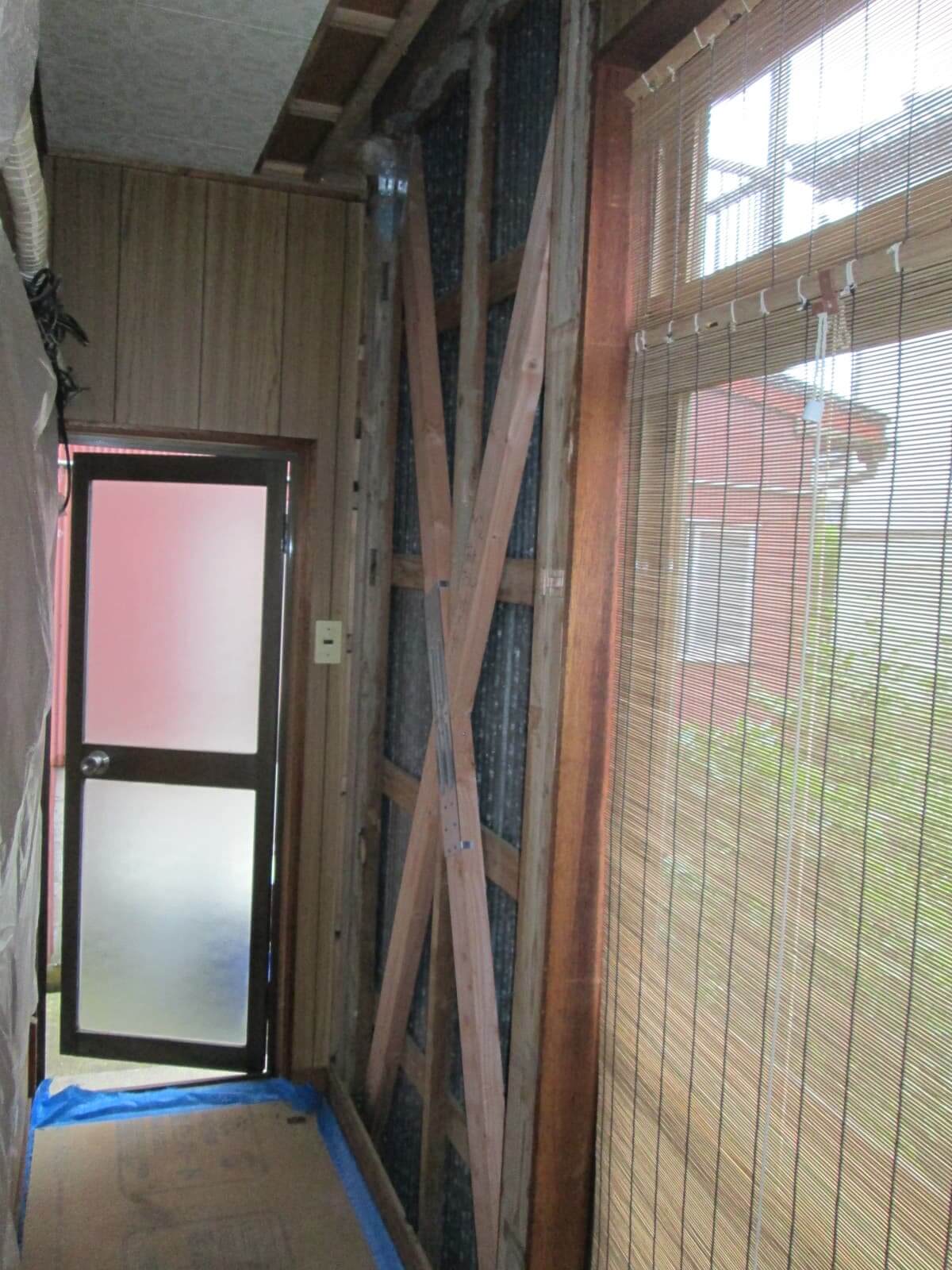 ここを解体して、耐力壁として強化するわけですが、壊してみると・・・