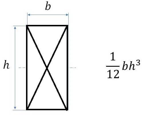 というものです。断面二次モーメントとは「変形のしにくさ」を表す数値ですが、これは形状によってかわります。筋交いは四角いものですので、この断面二次モーメントは以下の式になります。