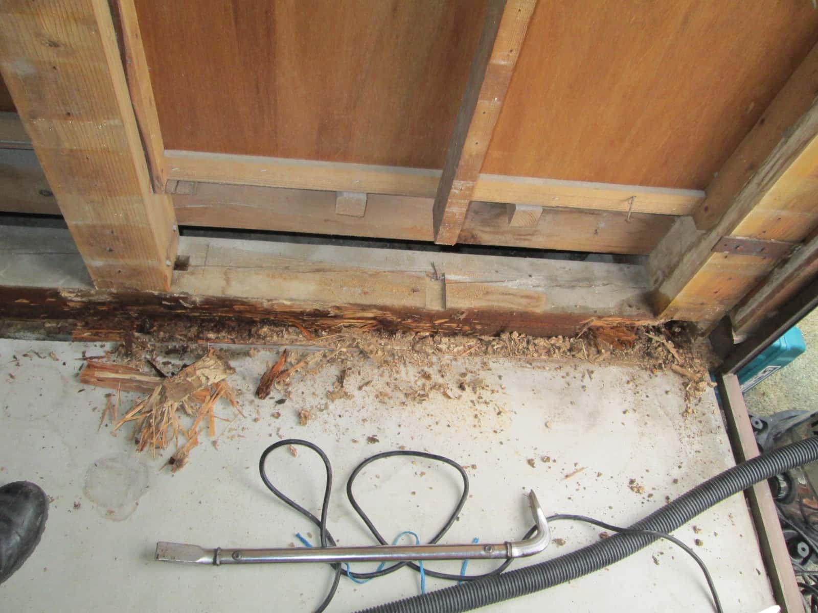 耐震改修の際には、こうした「土台の朽腐」に出くわすことは結構な頻度でありますが、もちろん、朽腐した土台の修復をしなければ、その場所での耐力壁の強化などできません。一仕事増えることになります。
