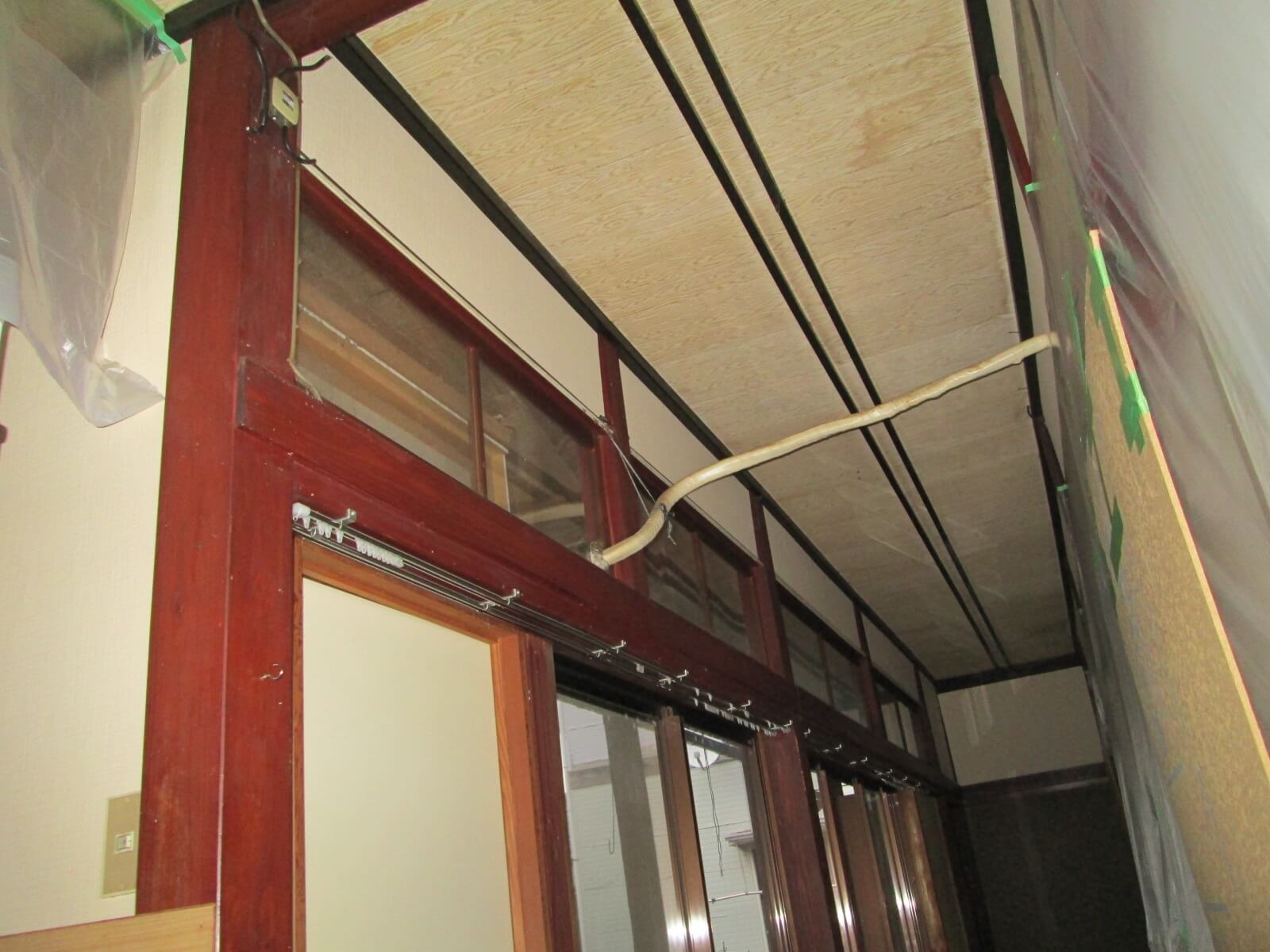 戸袋に雨戸を納めるための空間があります。当然、雨戸の出し入れがあるわけですので、室内側から操作できなければなりません。実はこの空間が耐震改修上、追加できる耐力壁の位置としては重宝するわけですw