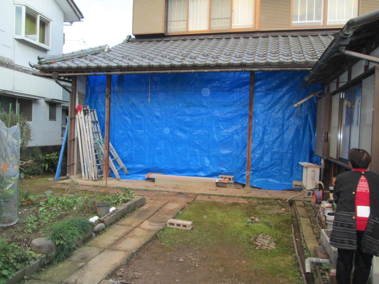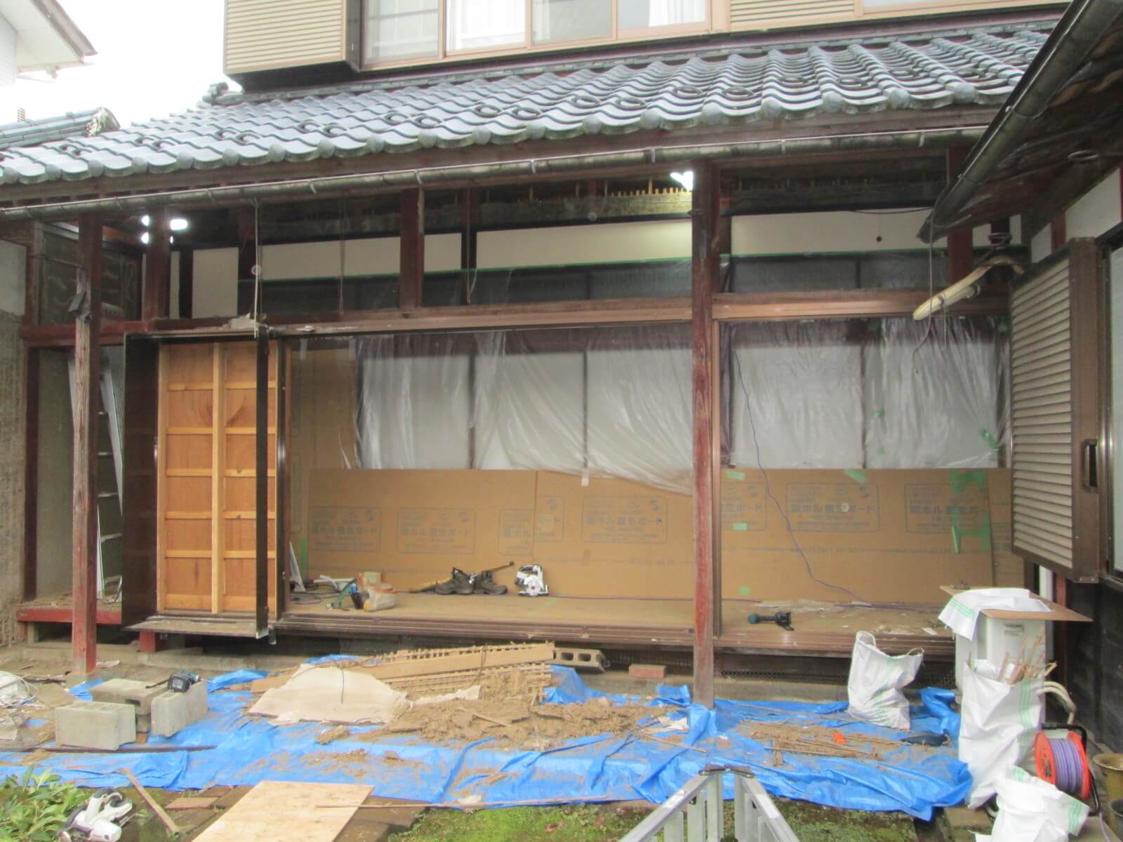 ただし、工程上は工夫も必要です。できるだけ早く開口部を整備する必要がありますので、入れ替えるアルミサッシなどは事前に現場採寸をし特寸で製作させる必要があります。もちろん、壊したまんまで帰るわけにはいきませんので、しっかりとブルーシートで養生させてもらいます。