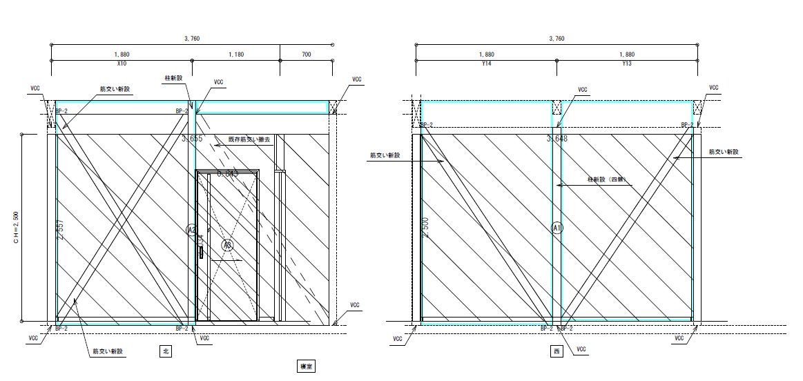 ・筋交い新設あるいは既存の筋交い