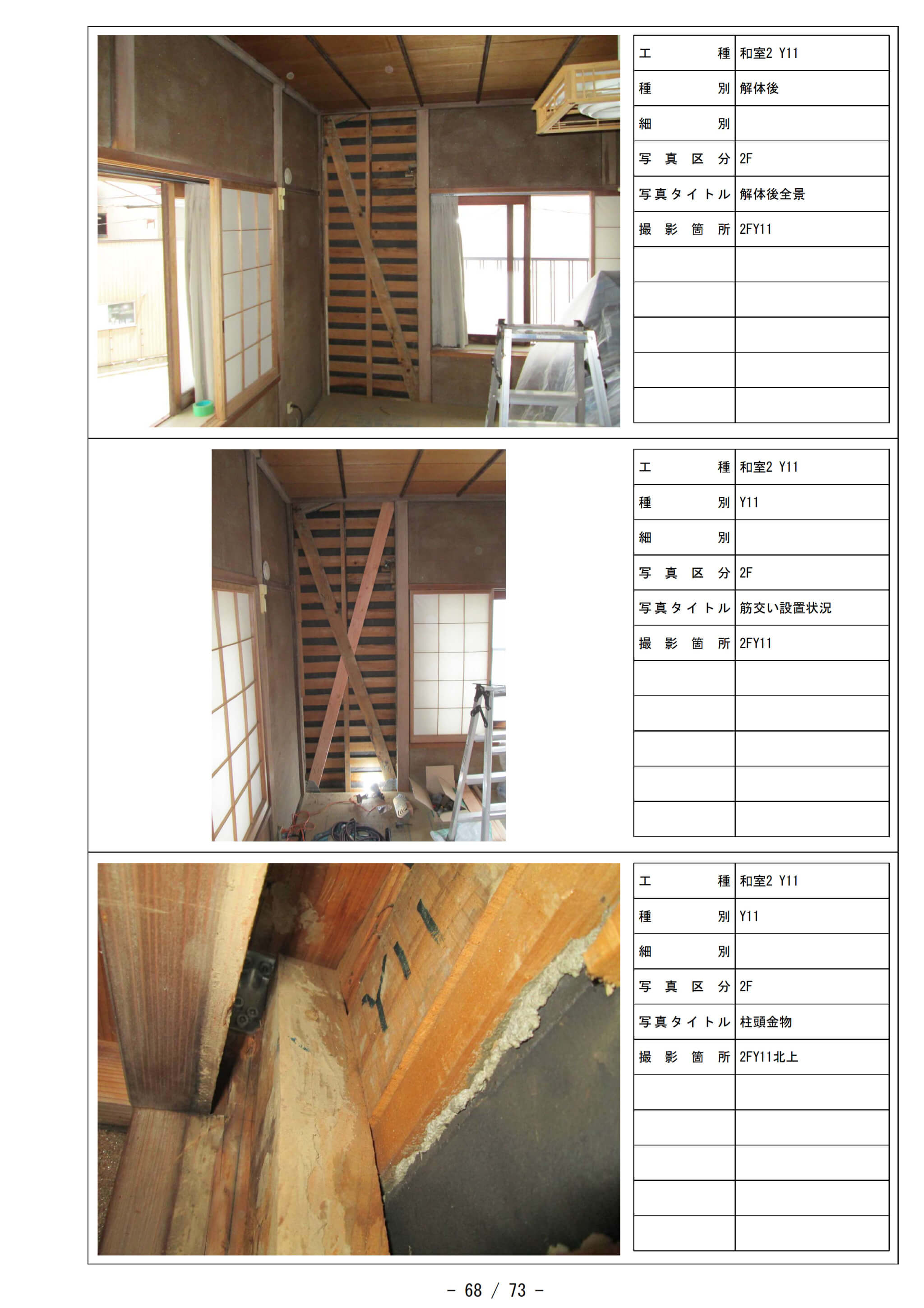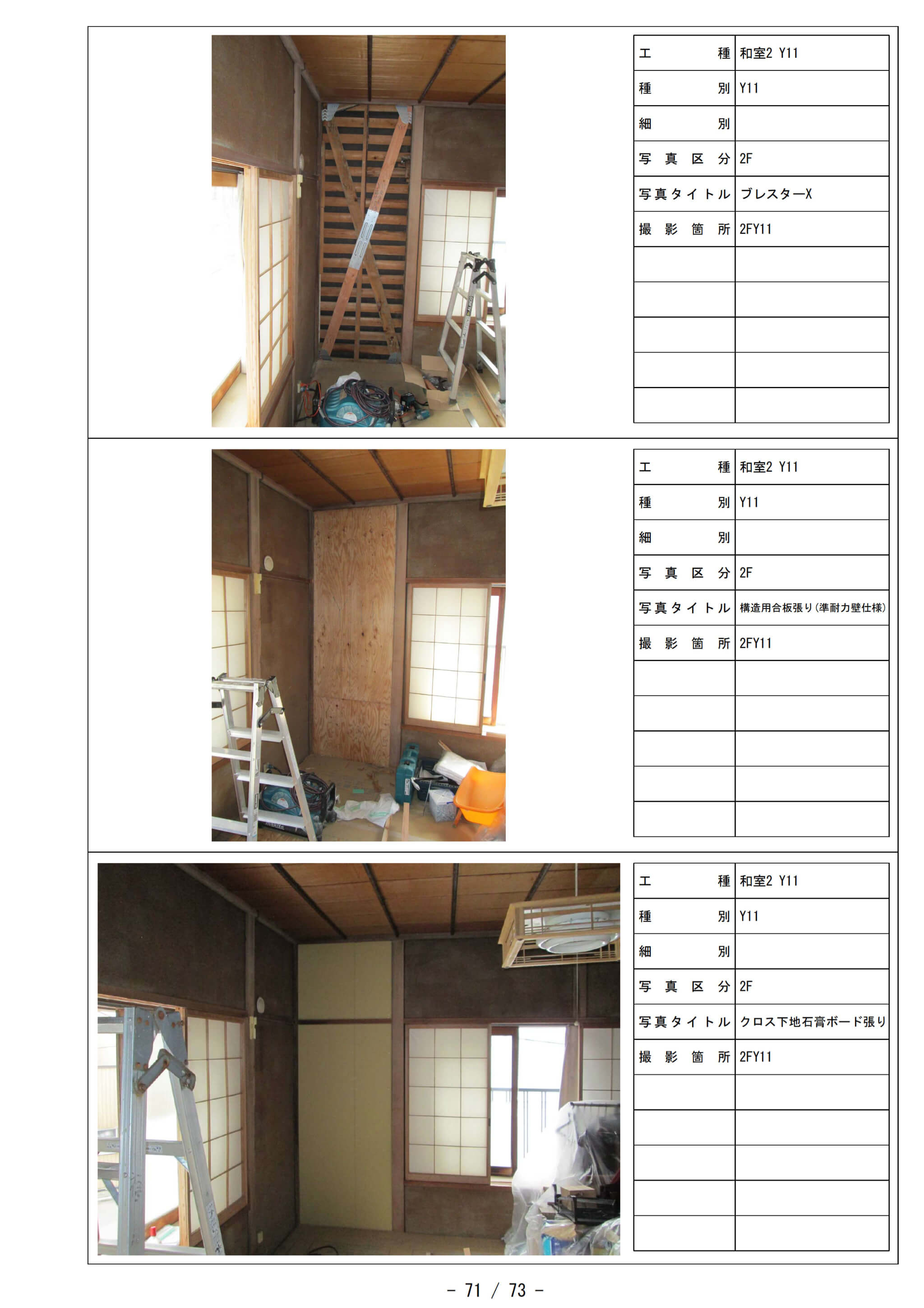 これらの写真は、すべて、同時に提出する施工見積明細と合致してくる必要があります。耐震改修工事として、補助を受ける対象として、