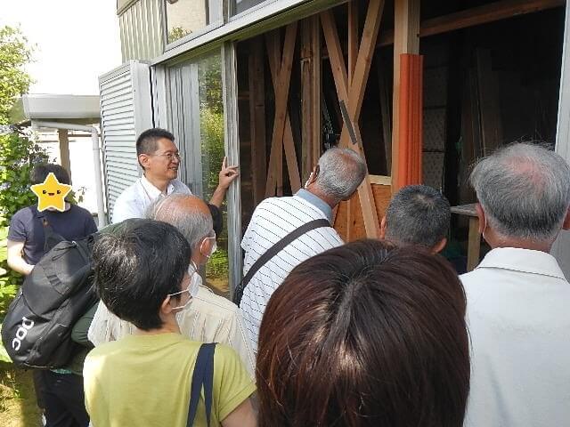 現場見学会では、ご自身の今の住まいと比較される方が多く、口々に「あー、うちもこんなんやってなー」とおっしゃっておられ、その際の改修方法として実際の現場をみると、なんとなく想像がついていらっしゃる感じでした。