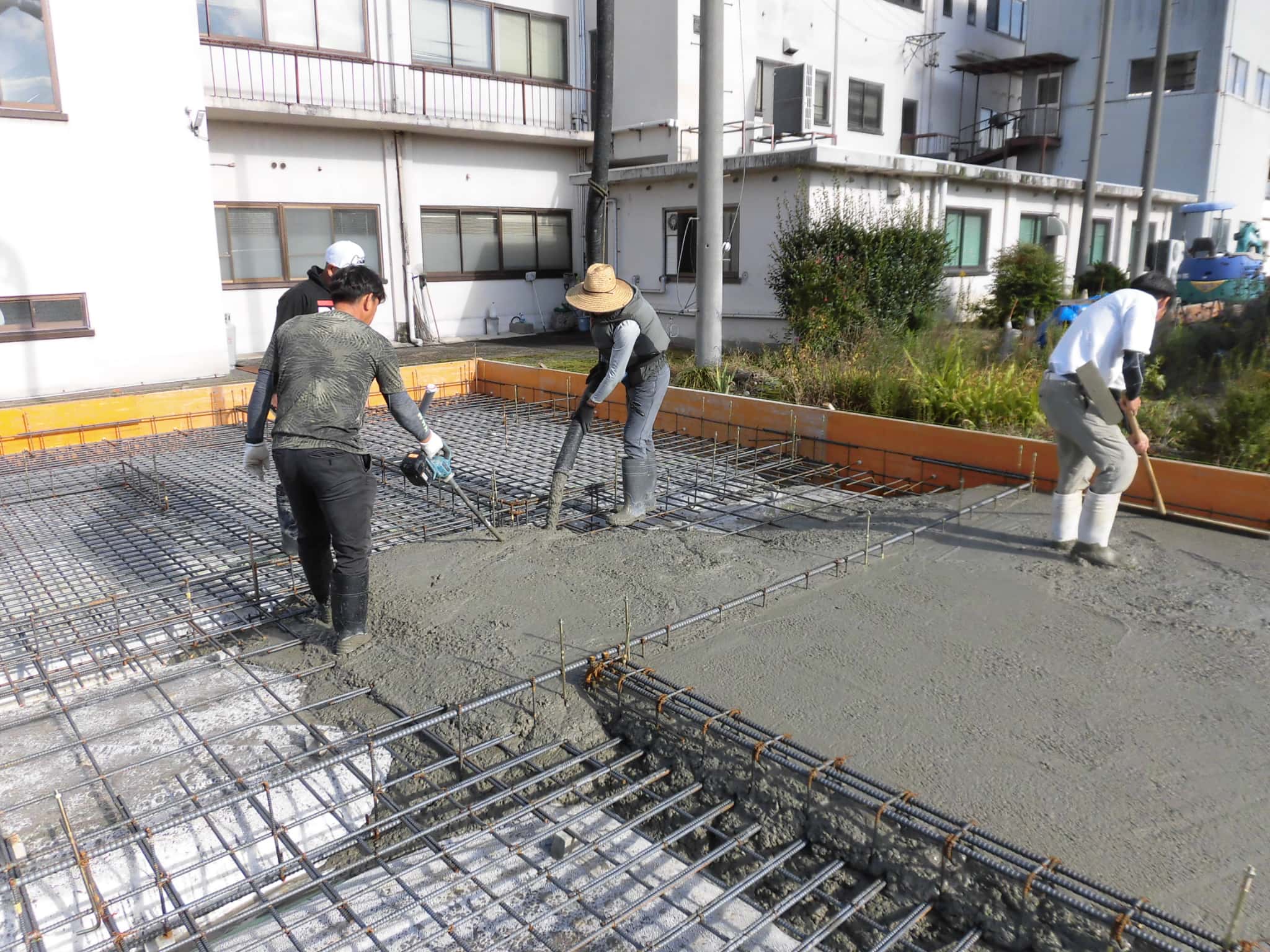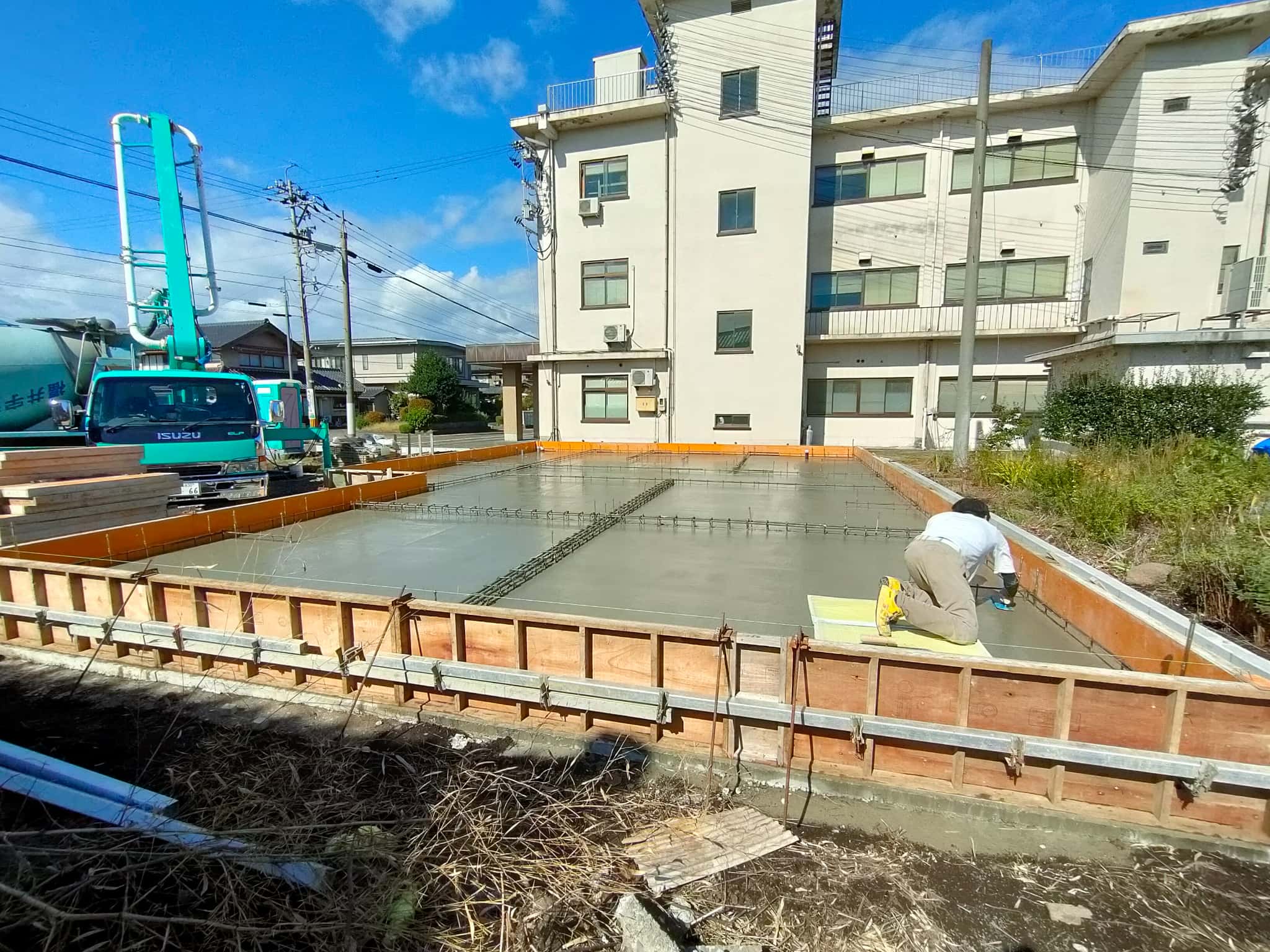 今日は、児童福祉施設の基礎耐圧版のコンクリート打設でした。