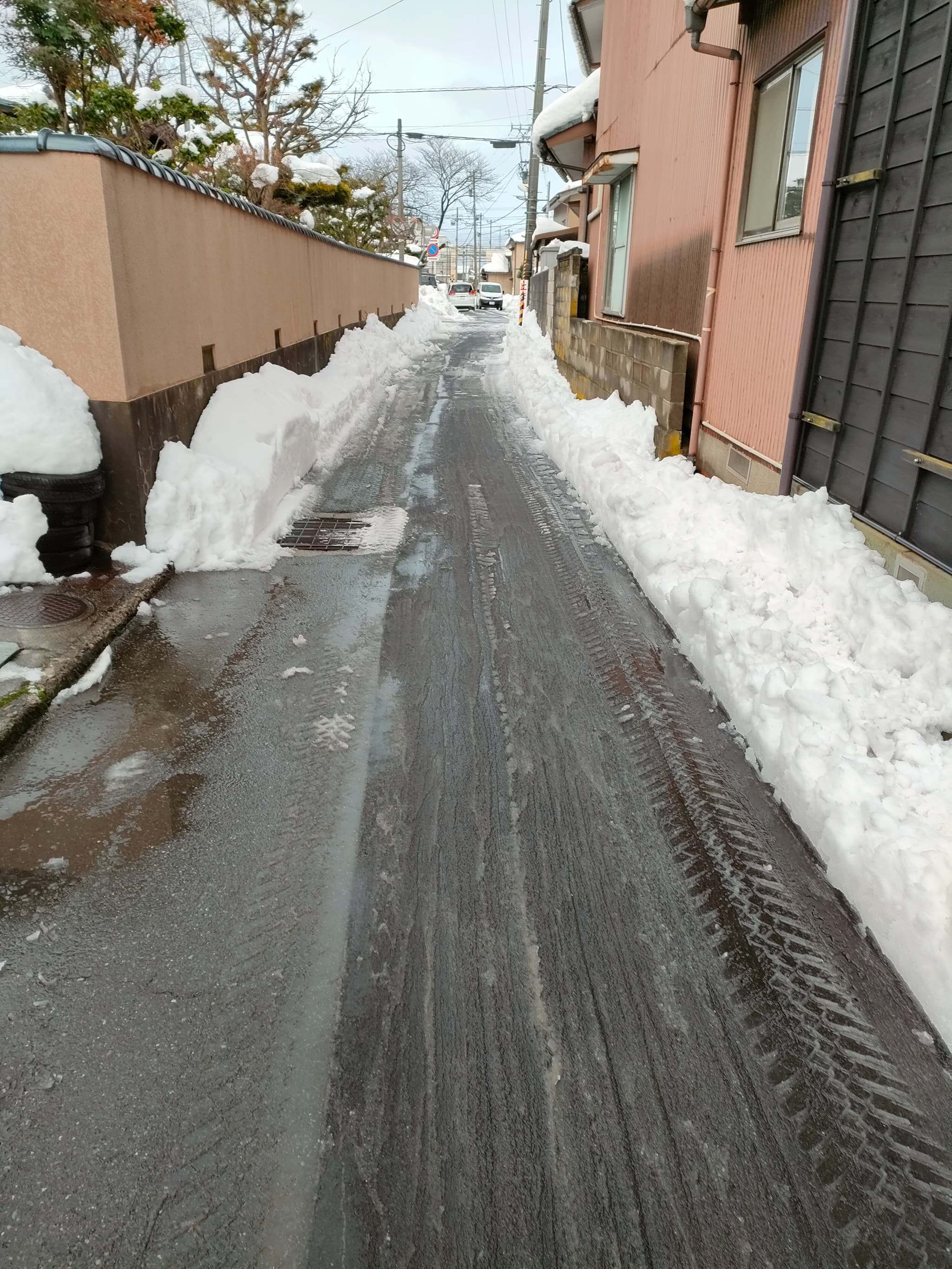 2月10日の昼過ぎになって、ようやく、寒波の雪が落ち着きだしました。日差しも差す中、今度は一気に雪融けが進んでいます。今朝方降った雪はもはや日差しを浴びることでシャバシャバの雪に変わっています。一見、もう除雪の必要はないんでは?っても思いますが、それは数回除雪がはいっており、ある程度、雪の量が減っているところであって、ここ数日で1回、ないし、全く入らなかったところというのは、最初に積もった雪が氷の塊のようになっています。新雪の上はスタッドレスタイヤであれば楽に走り抜けることはできますが、この氷の塊となったところでタイヤが雪を掘り返すようになりますと、スタックするような蟻地獄ができあがってしまいます。