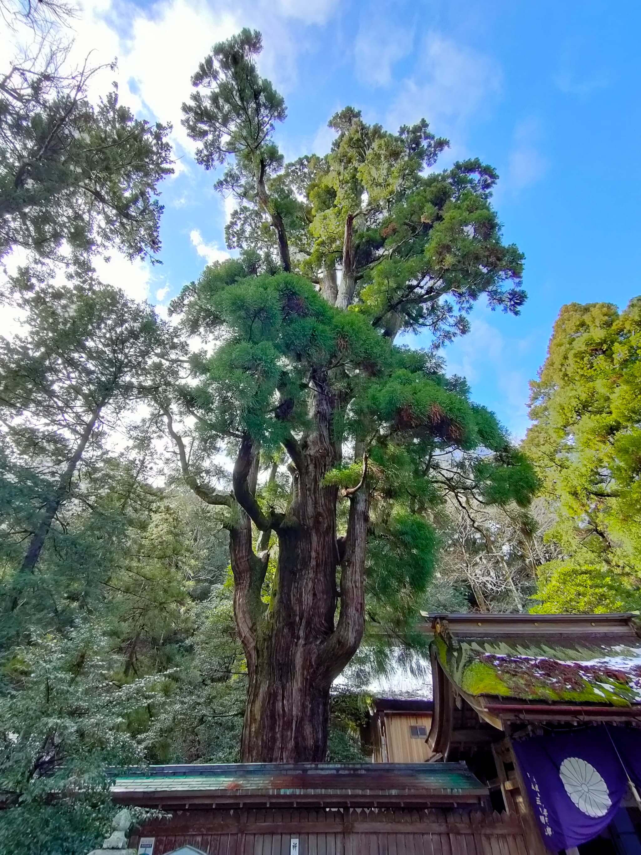 「若狭姫神社の千年杉」として有名で、御神木として仰ぎ見て拝む場所もあります。建築を業とするものとしては、この杉を拝むことで自らを省みる機会になるのでは?と思ってしまうくらい威厳のある樹木です。