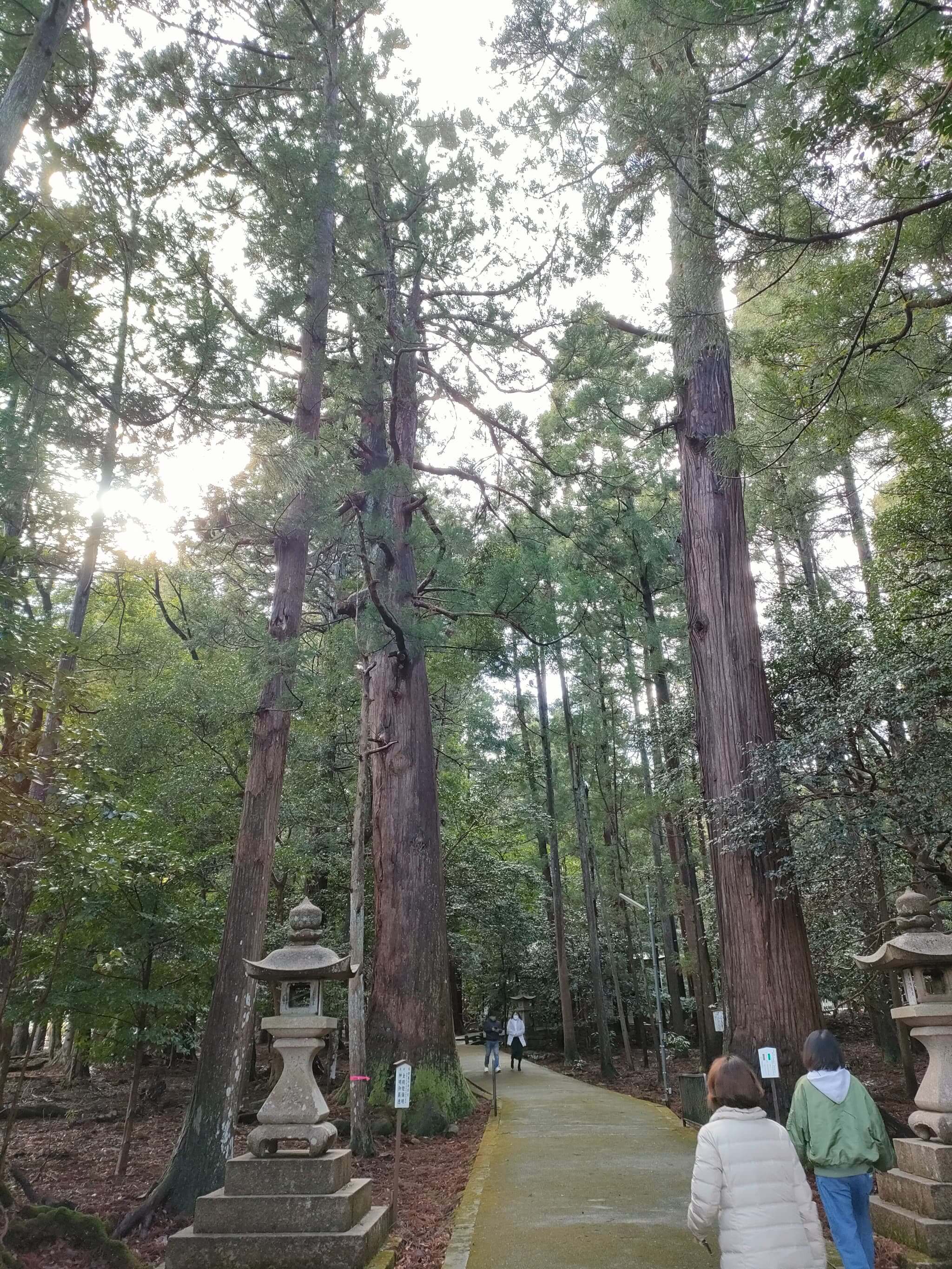 参道は両側に杉の巨木がつらなっており、その杉の木も、真っ直ぐ伸びているものばかりです。もうこの状況だけでも、背筋がピンと伸びます。