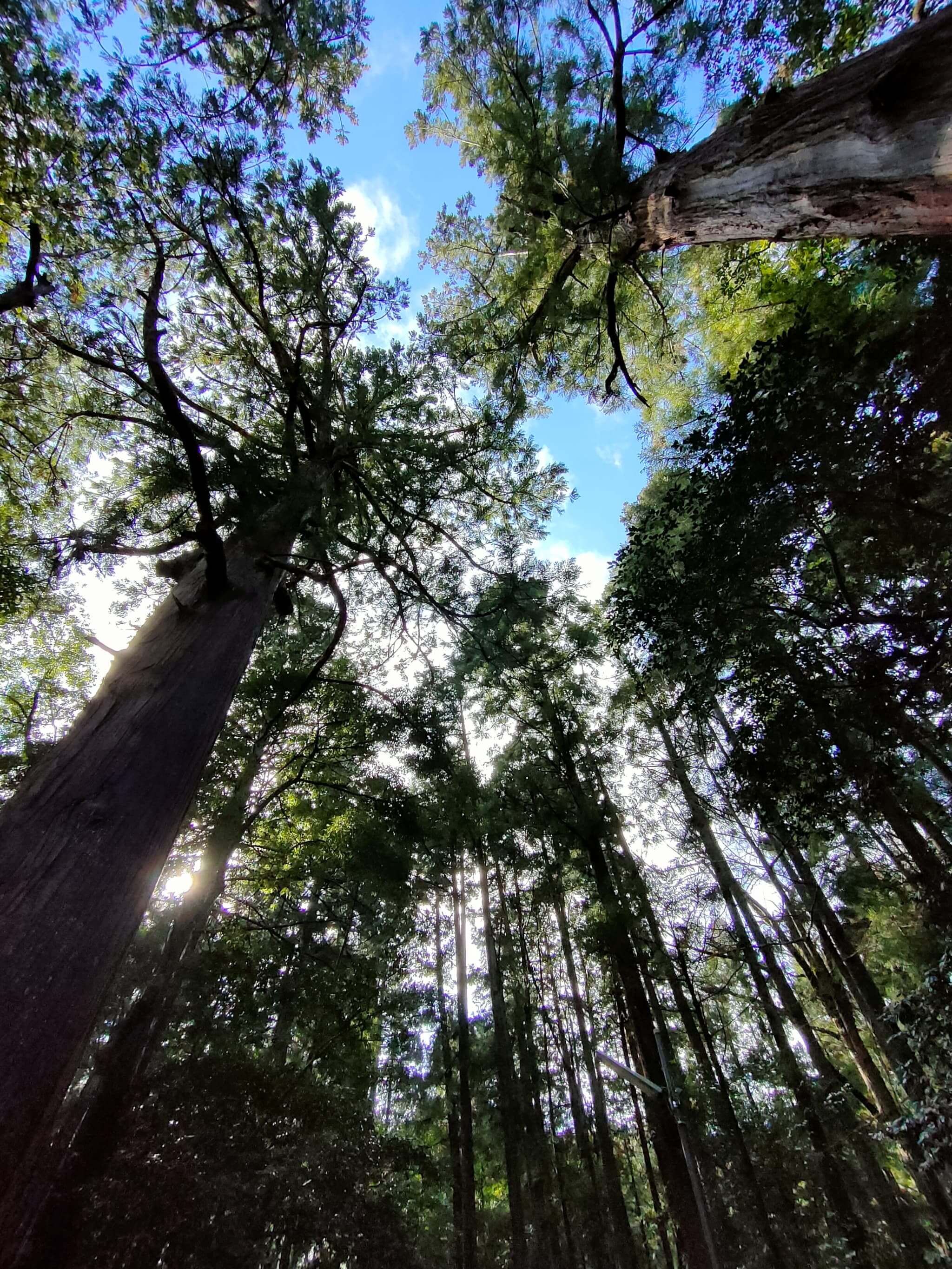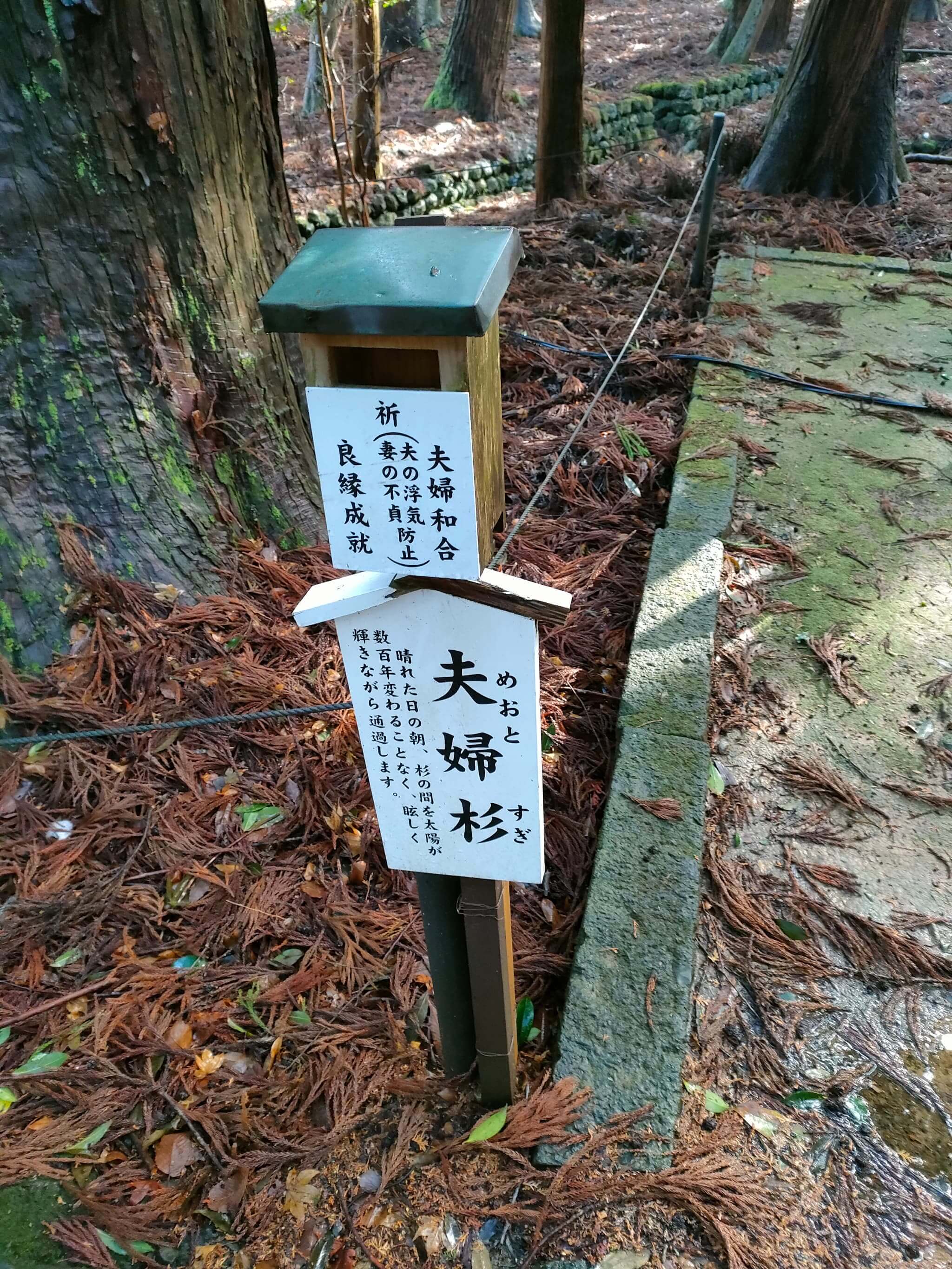 二本の杉が根本で一緒になっていますが、その両方の杉の木が真っ直ぐに立っています。どちらかの杉の木が曲がっているというのはよく見る光景ですが、二本とも真っ直ぐに育っているのは、まさに「夫婦」として成り立っているというのを象徴しているように感じました。