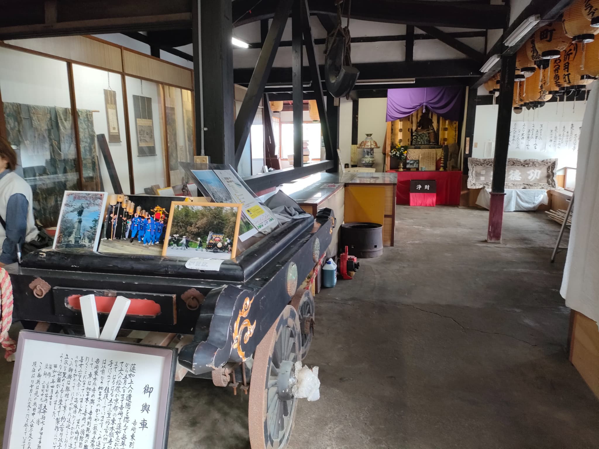 蓮如上人御影道中の練り歩きの輿も展示されています。北国街道沿いは今では住宅街の中を通る道で、いわゆる生活道路にもなっている道。この輿がくると、信心深い方は表にでて手を合わせて拝むという感じです。