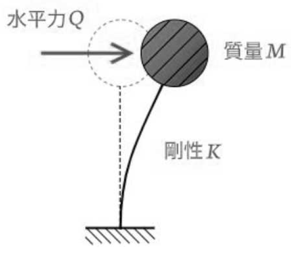 です。そして、問題なのは長周期地震動は、一般的に示される「震度」による地震の揺れの規模とは別次元のものであるということです。地震は、揺れを起す波として伝播されます。この波によって建物が揺らされるわけですが、建物にはその重さ、高さ、固さなどによって揺れ方が決まってくるのですが、このときの揺れ方を「固有周期」という言葉で表すことができます。固有周期は、建物が右端から左端に揺れるときに「時間T」をさすのですが、以下のような式で表されます。