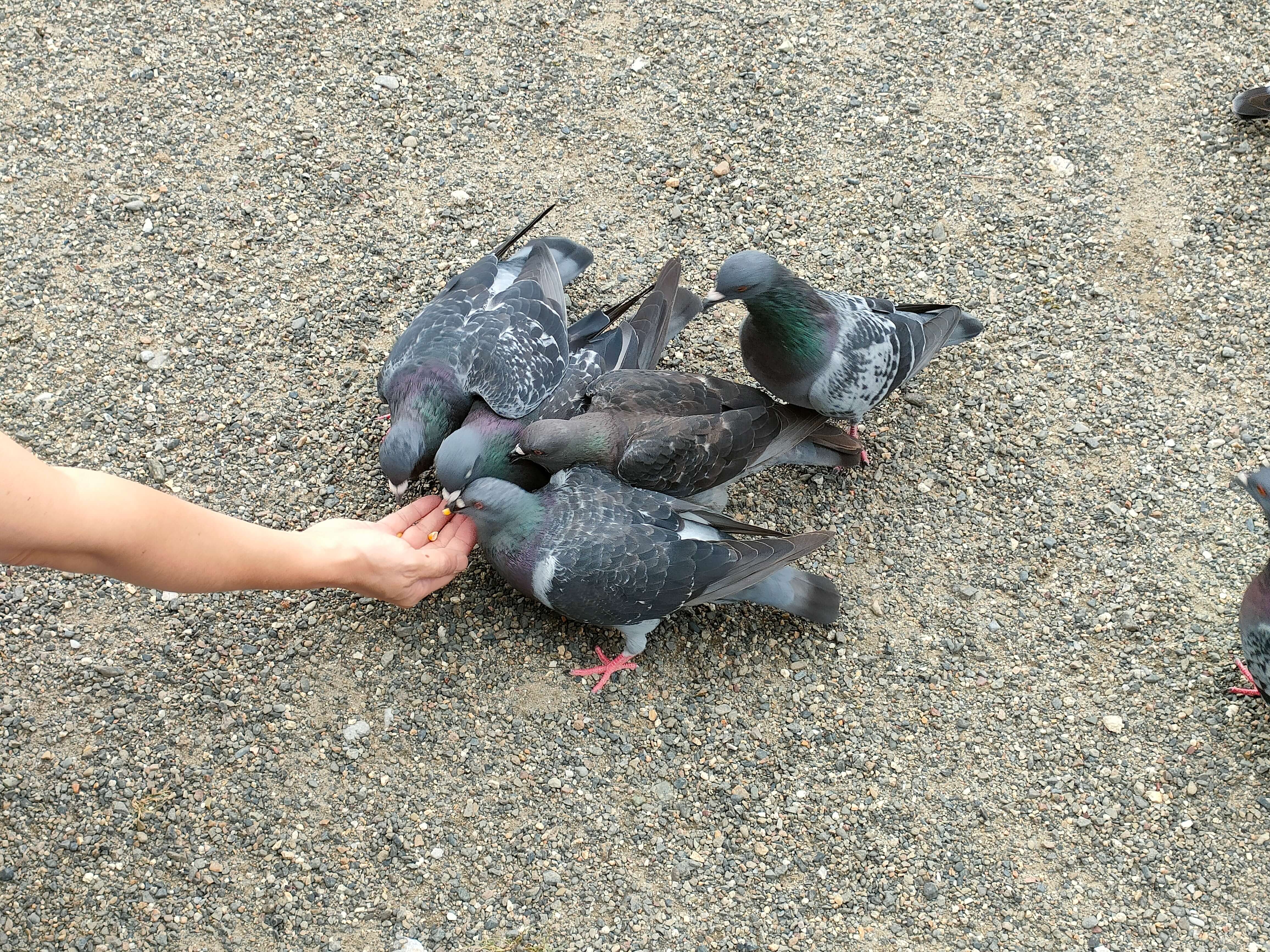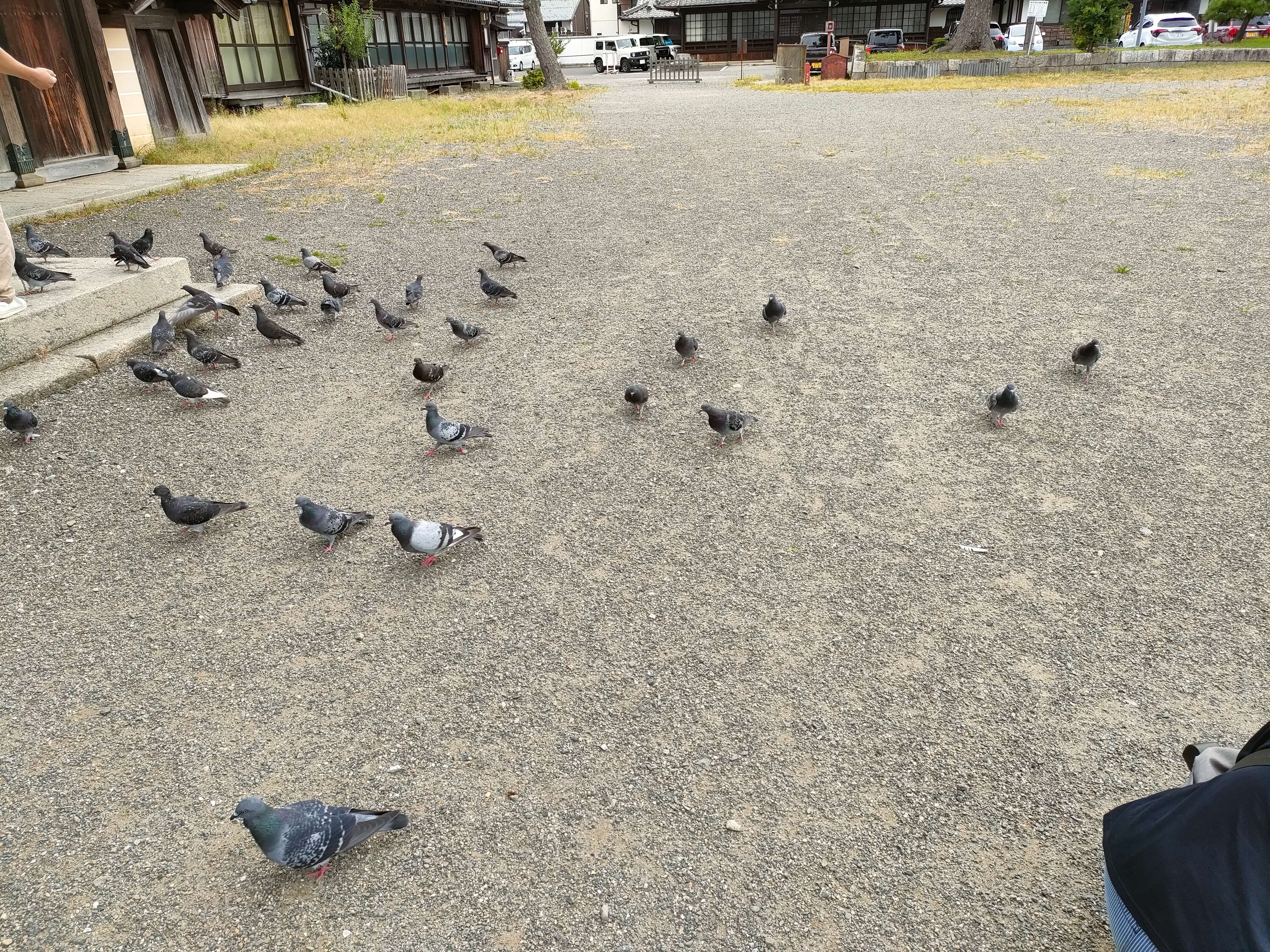 お寺には「鳩」がいっぱいいるのですが、餌付けされている感じです。