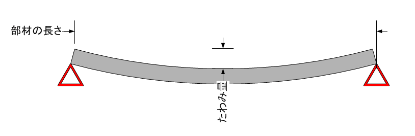 「対象とする部材の長さ」と「たわみ量」により、