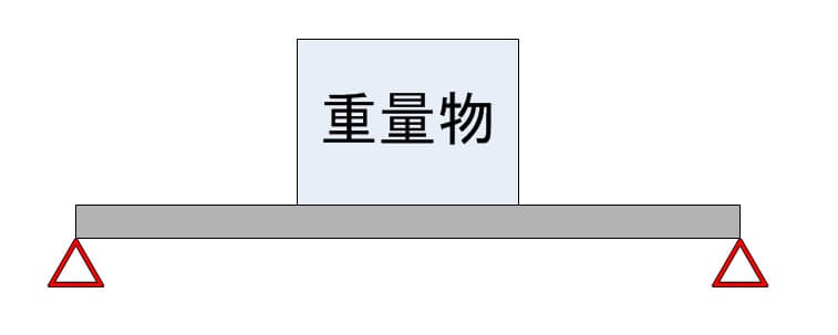 重量物を床や屋根などの上に置くと、その置いた瞬間に、以下の図のようにたわみます。