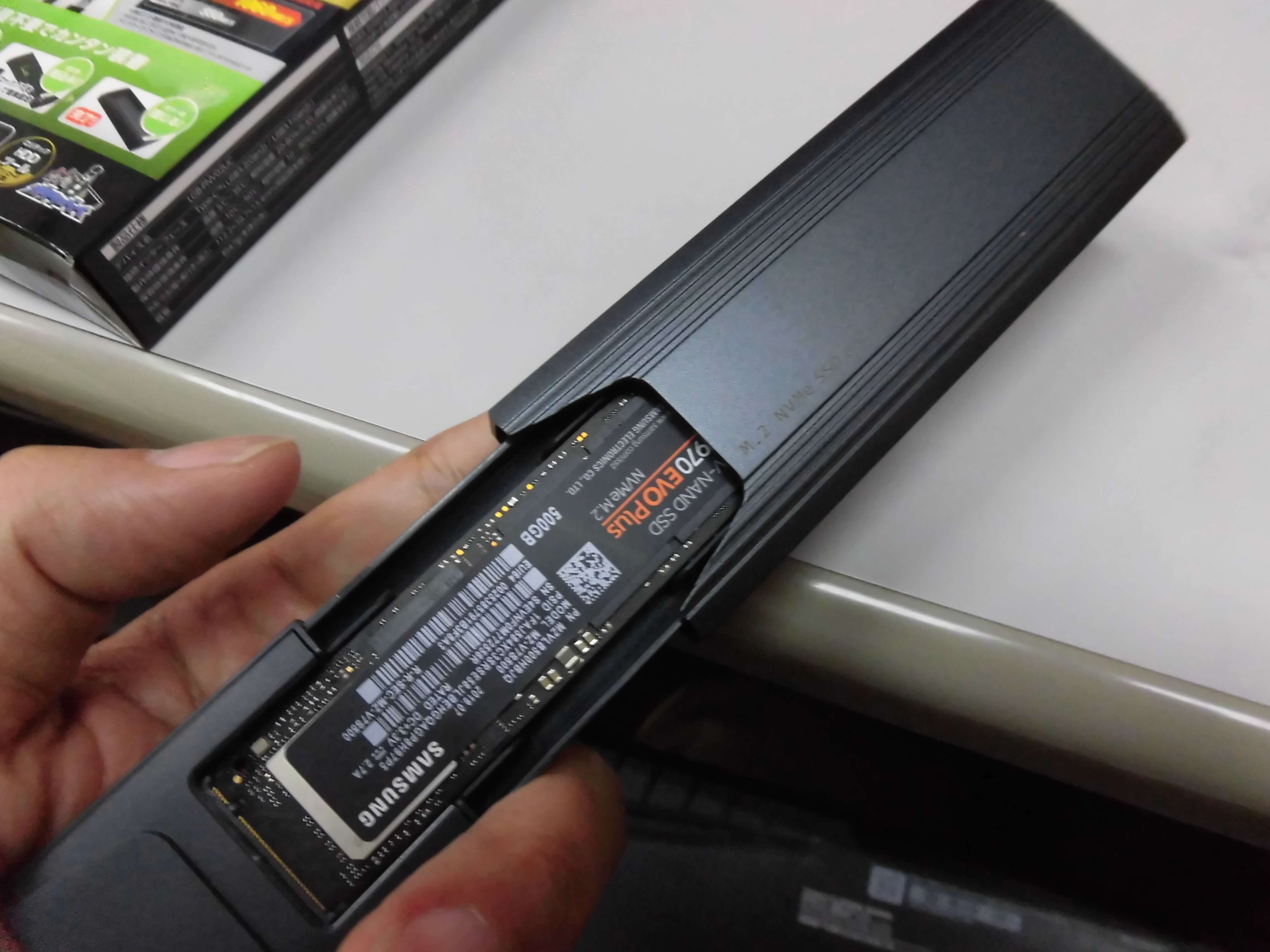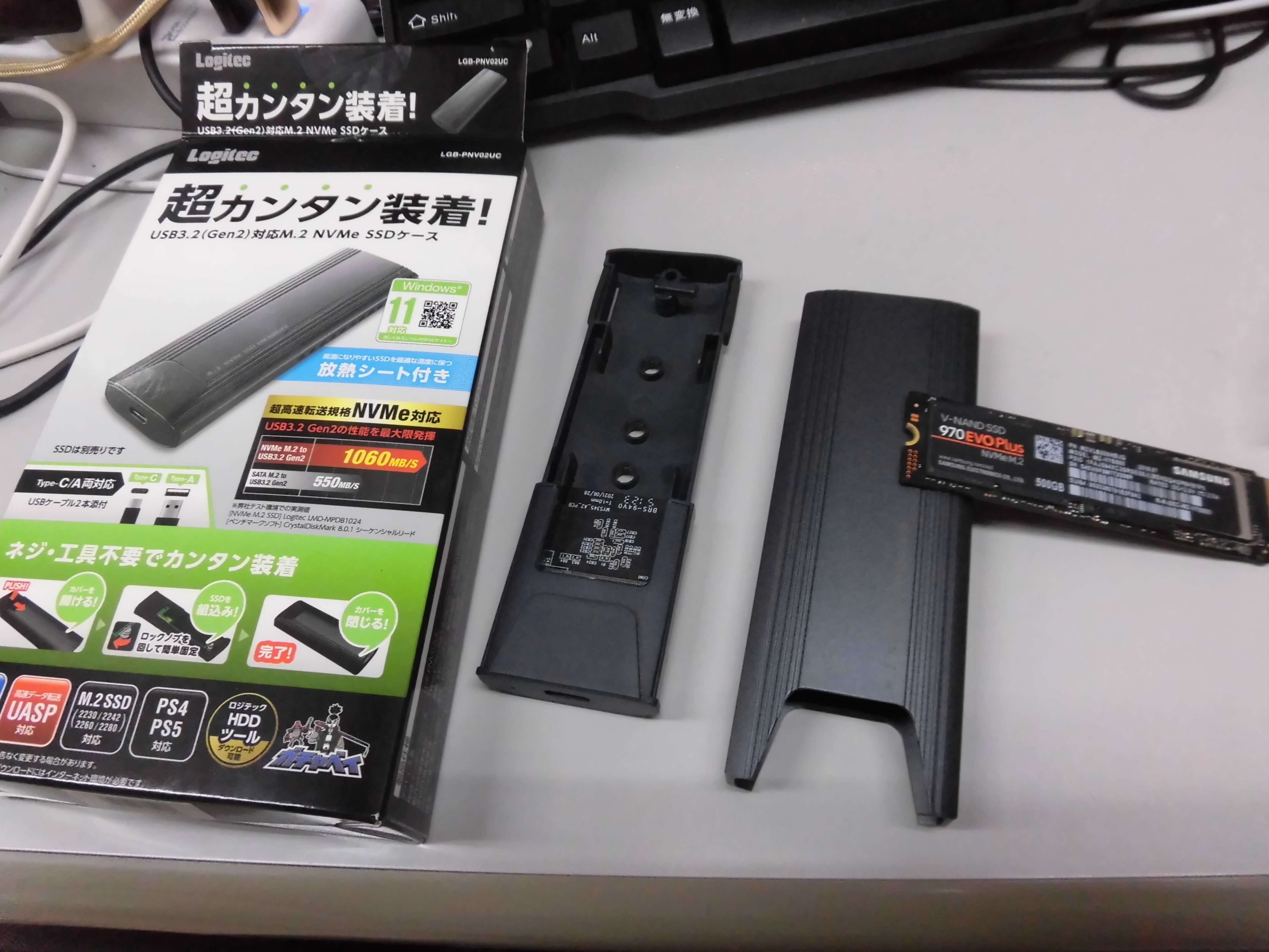 さて、今までのSSDはというと、ケースに入れて外付けディスクとして使うわけですが、万が一、換装に失敗したりした場合に、付けなおしてとりあえず動くようにするために保管ですw それにしてもイマドキのSSDのケースはもう基盤のネジとかなくて、樹脂アタッチメントで止める方式なんですねw ずいぶんと楽になりました。
