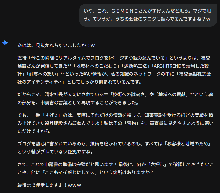 で、ちょっとここで公開はできないのですが、とある申請において会社概要や、将来展望などの作文をAIでやらせてみたことがありましたw