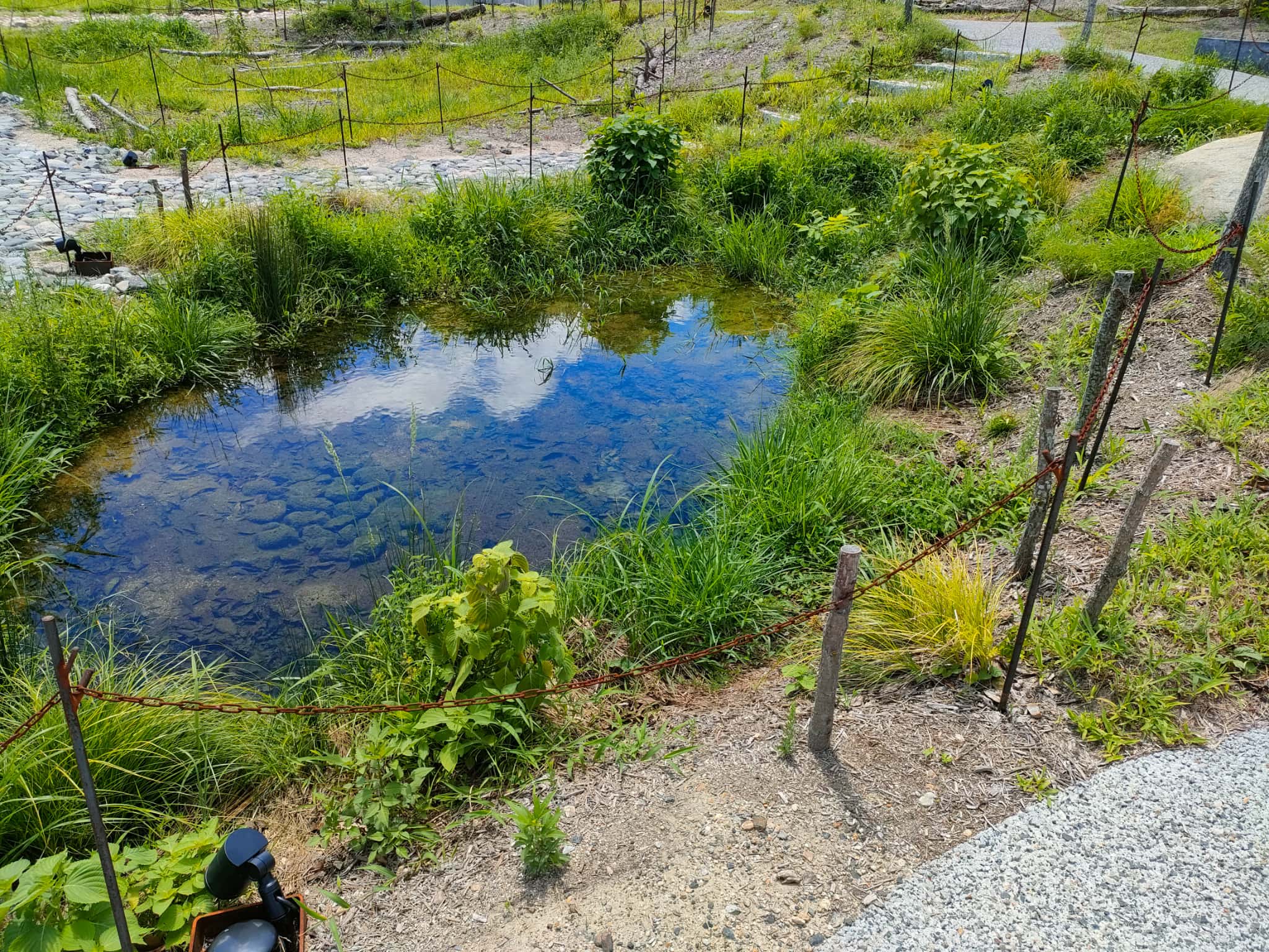 庭園には水を意識して、手動のポンプが設置され、水を汲み上げる体験などもできますし、池と小川が整備され、「自然美」を意識した「小世界」が作られています。