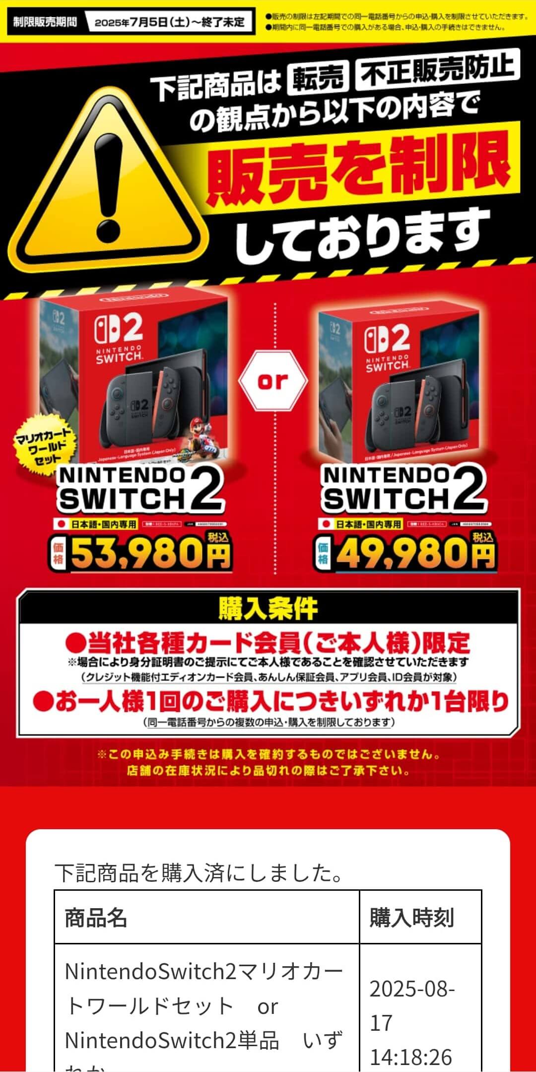 Nintendo Switch2 購入(抽選なしw)