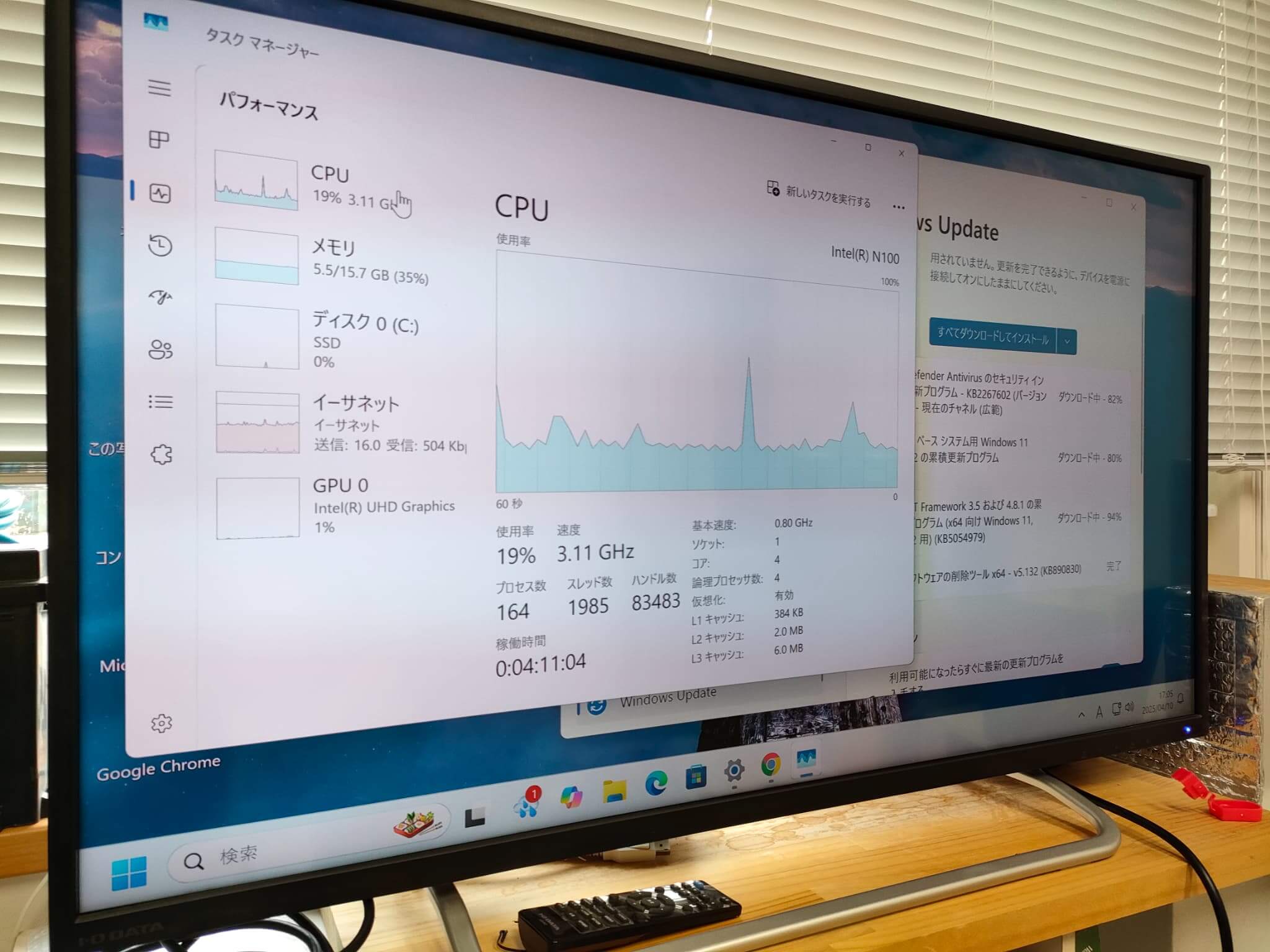 CPUはINTEL N100で、16Gのメモリ、SSDは512Gです。使用感としては・・・・