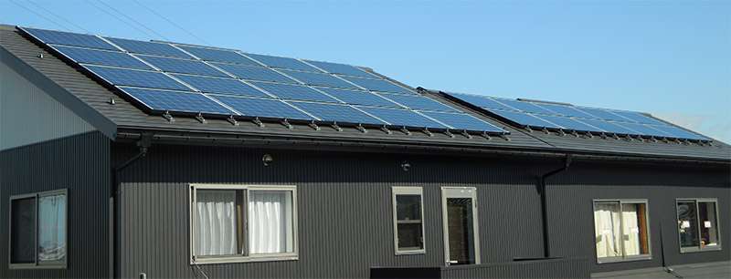 当社では設計時に可能な限り最大容量の太陽光発電システムを標準仕様として採用しています。当社が採用している太陽電池パネルは純国産のパネルです。海外の太陽電池パネルと比べてクオリティーが全く違います。保証も【システム保証10年・パネル出力保証20年・自然災害補償10年】とトリプル保証となっています。また、メーカとの直接取引のためコストパフォーマンスにも自信が有ります。