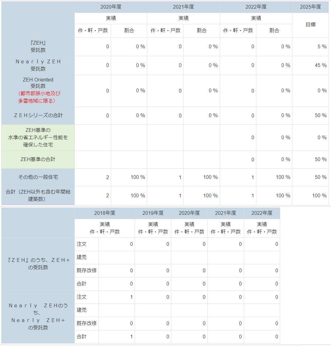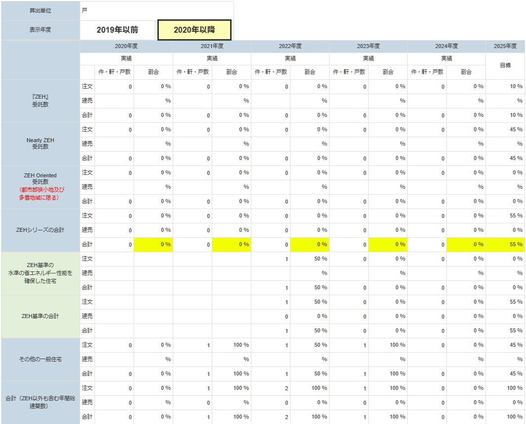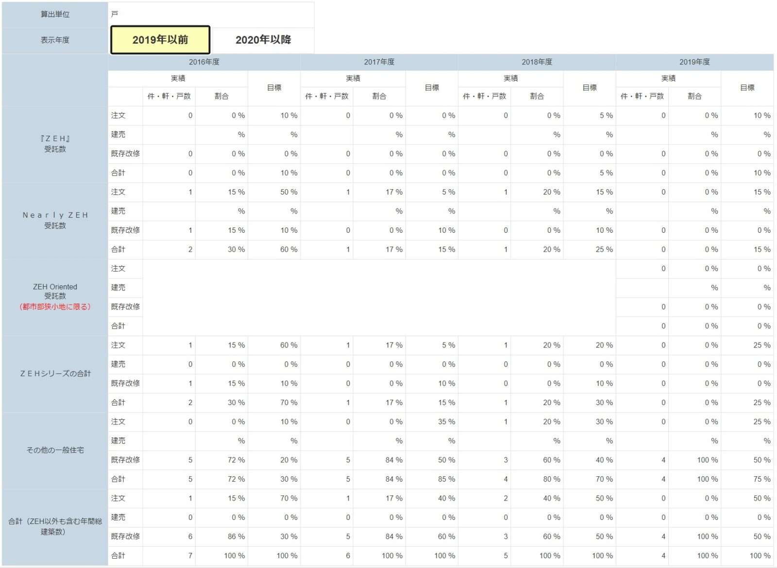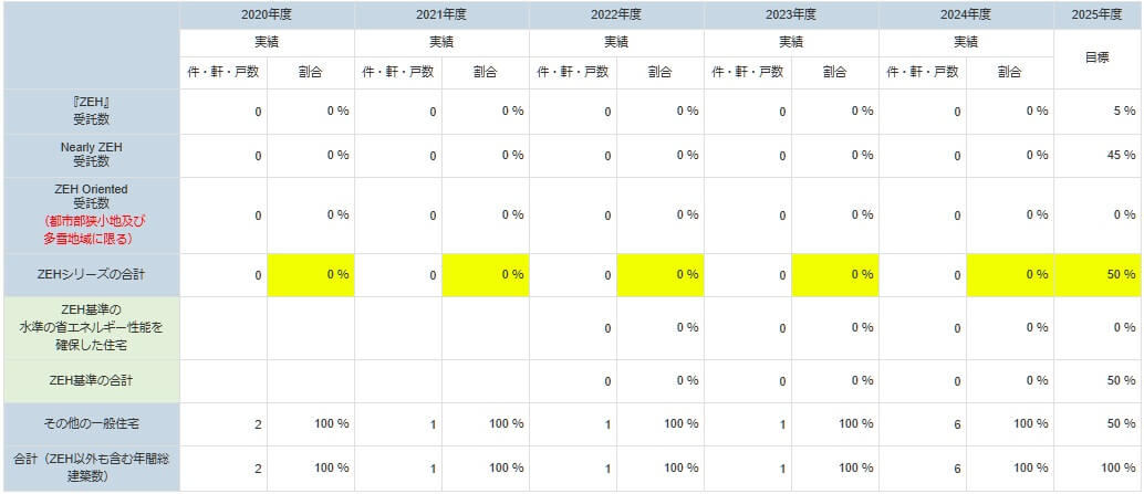 当社としてのZEH対応の目標値は以下の表のとおりです。2016年度より5年間にわたって当社で建築・改修させていただく建物はほぼZEHに対応した建物になります。